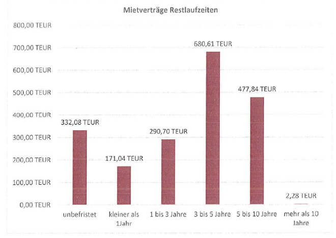 Die mit den Mietvertragsparteien zum 31.12.2016 abgeschlossenen Vertragsmieten belaufen sich auf in Summe EUR 1,96 Mio., wovon rund TEUR 315,58 auf unbefristet abgeschlossene Wohnmietverträge entfallen.