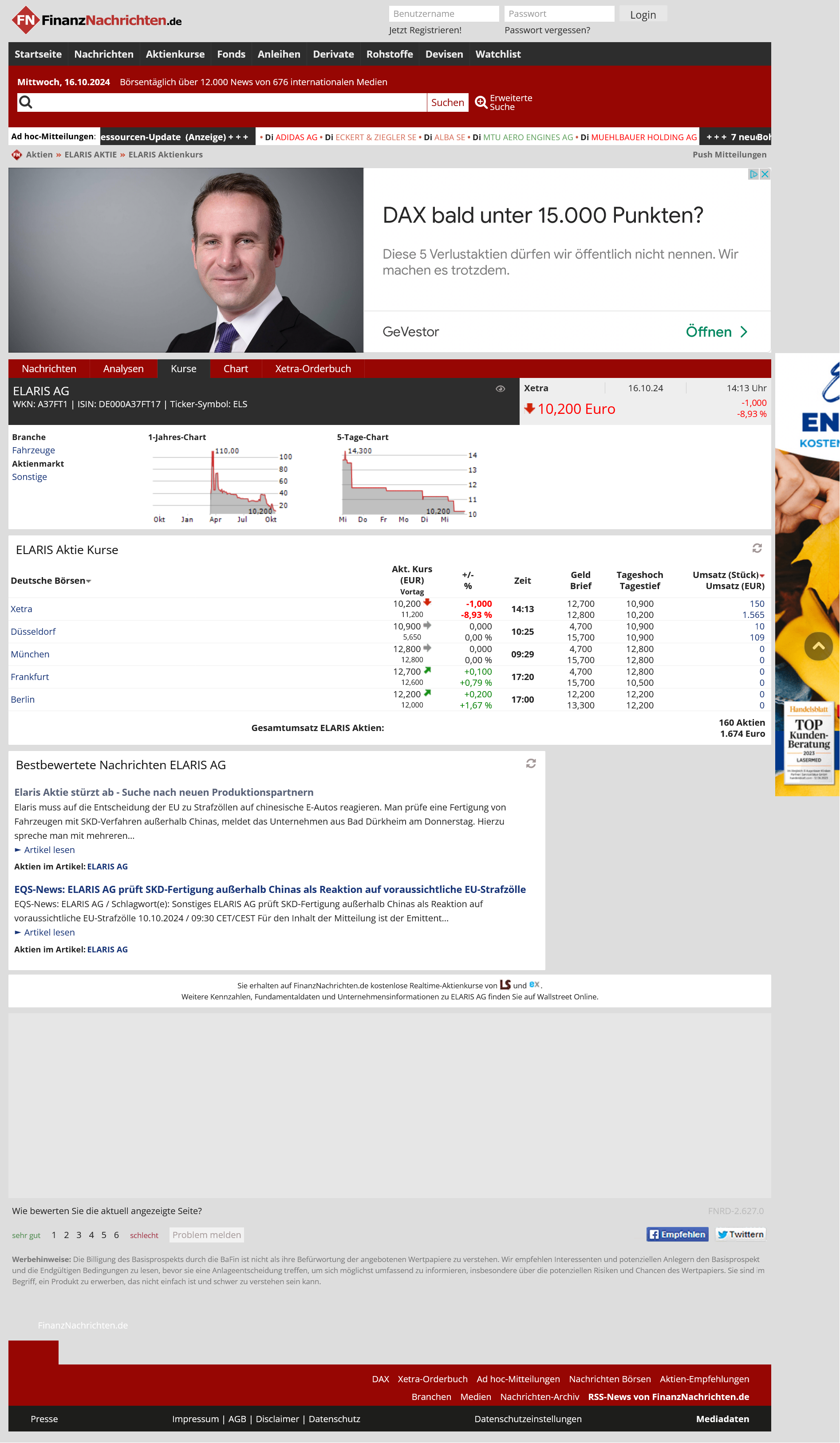 Es sind vom Umsatz her dann kleine Verkäufe der Elaris-Aktie an der Börse, wie man dem abgebildeten Screenshot entnehmen kann. Natürlich macht sich das dann auch wiederum am Kurs bemerkbar. Was uns fehlt, ist, dass Elaris einmal konkrete Zahlen der verkauften Autos seit Januar 2024 benennt. Wären das überzeugende Zahlen, würde das natürlich dem Aktienkurs guttun. Wäre der Umsatz jedoch gering, könnte das dem Kurs weiteren Schaden zufügen. Eine Entscheidung, die Lars Stevenson treffen muss. Zudem erwarten wir natürlich, dass die letzte Anpassung des Umsatzes in diesem Jahr war und hier nicht noch einmal nachgebessert werden muss. Für uns ist Elaris in vielerlei Hinsicht immer noch eine Blackbox. Schade eigentlich, Herr Stevenson.