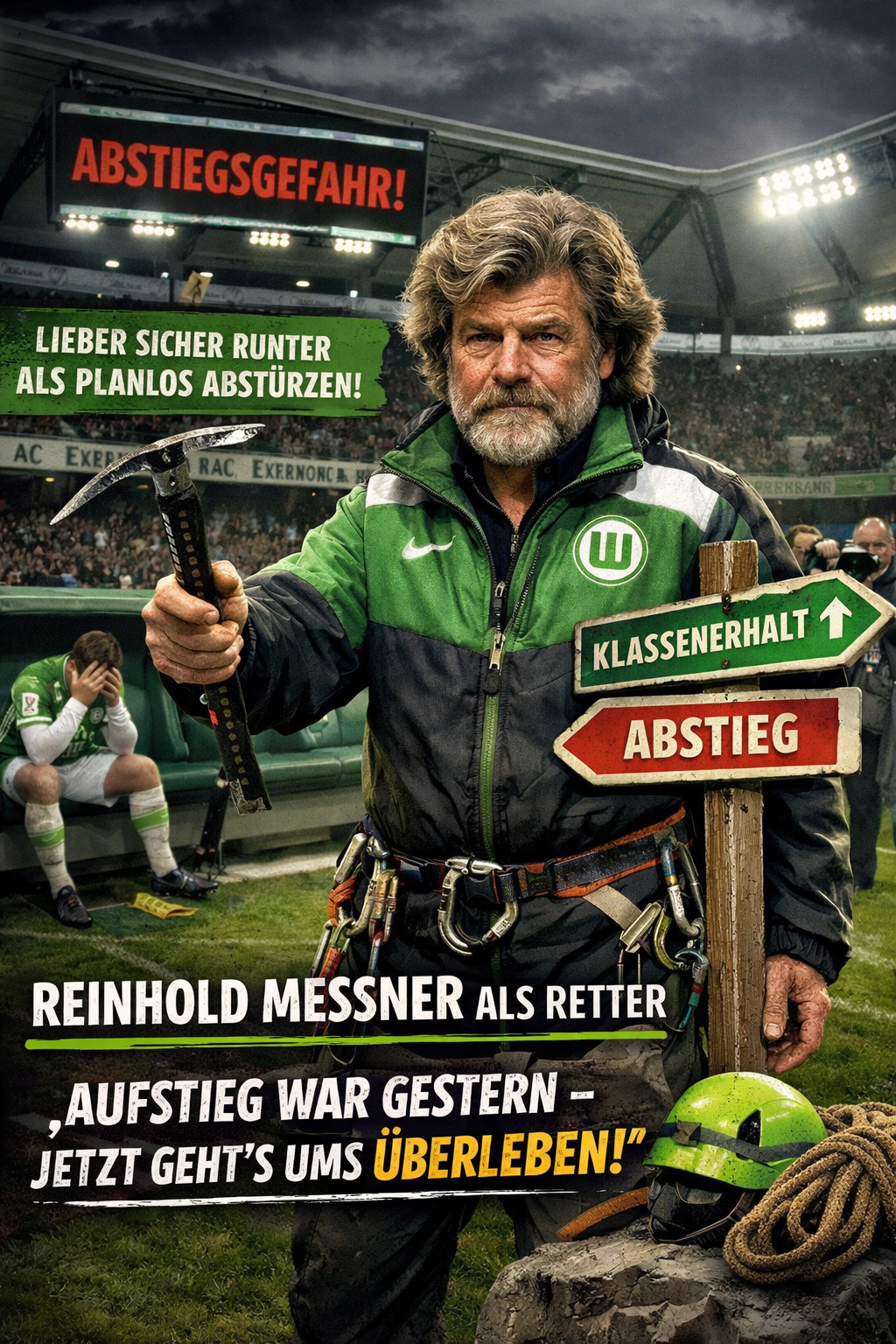 Der Extrembergsteiger und Bestseller-Autor („Der sichere Abstieg“) soll nun also den VfL retten – oder zumindest dafür sorgen, dass der Absturz kontrolliert erfolgt.