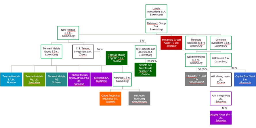 | MidCo 2 | Tennant Metals Group S.à r.l. zusammen mit ihren Tochtergesellschaften, die 5%ige Minderheitsbeteiligung an SBG Bauxite and Alumina S.A. und C.S. Tetrano Ltd. zusammen mit ihrer Tochtergesellschaft Taressa Mining Logistics S.à r.l. |