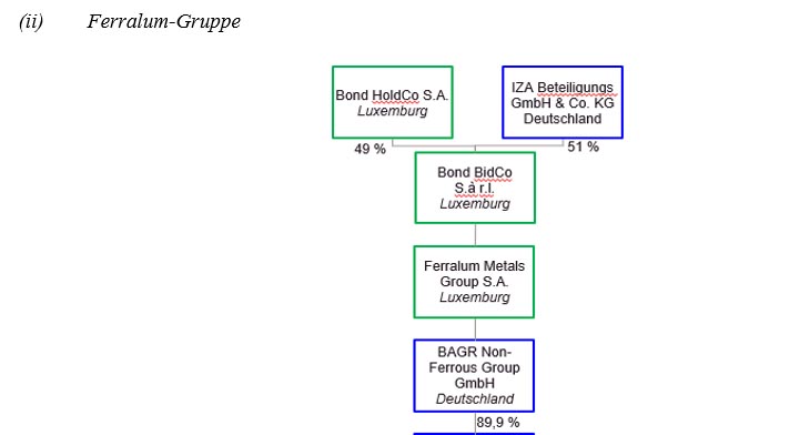 | Ferralum | Ferralum Metals Group S.A., derzeit zu 100% im Besitz von ManagementCo. Nach der Durchführung der Transaktion wird Ferralum zu 100% im Besitz von Bond BidCo sein. |