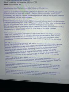 Das Lebenswerk von Alexander Hahn geht gerade den Bach herunter, wie man im Volksmund so schön sagt und Alexander Hahn muss, ob er will oder auch nicht, jetzt zuschauen. Deshalb hat sich Alexander Hahn in einer emotionalen Mail an seine Mitarbeiter gewandt.