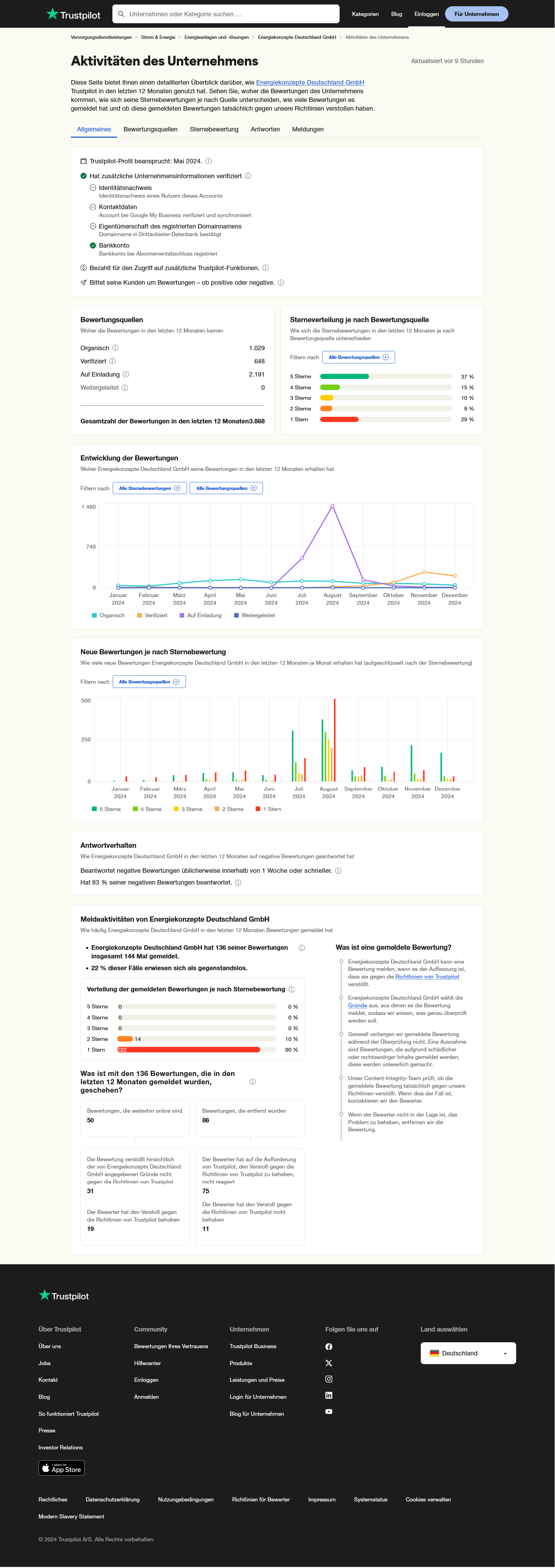 Energiekonzepte Deutschland GmbH zeigt bereits Ansätze, Kundenfeedback aktiv zu bearbeiten. Allerdings zeigt der hohe Anteil an 1-Sterne-Bewertungen deutliche Schwächen in der Kundenzufriedenheit. Für 2025 sollten die Hauptziele darin liegen, die Ursachen negativer Bewertungen zu analysieren, interne Prozesse zu optimieren und die Kommunikation mit Kunden zu verbessern.