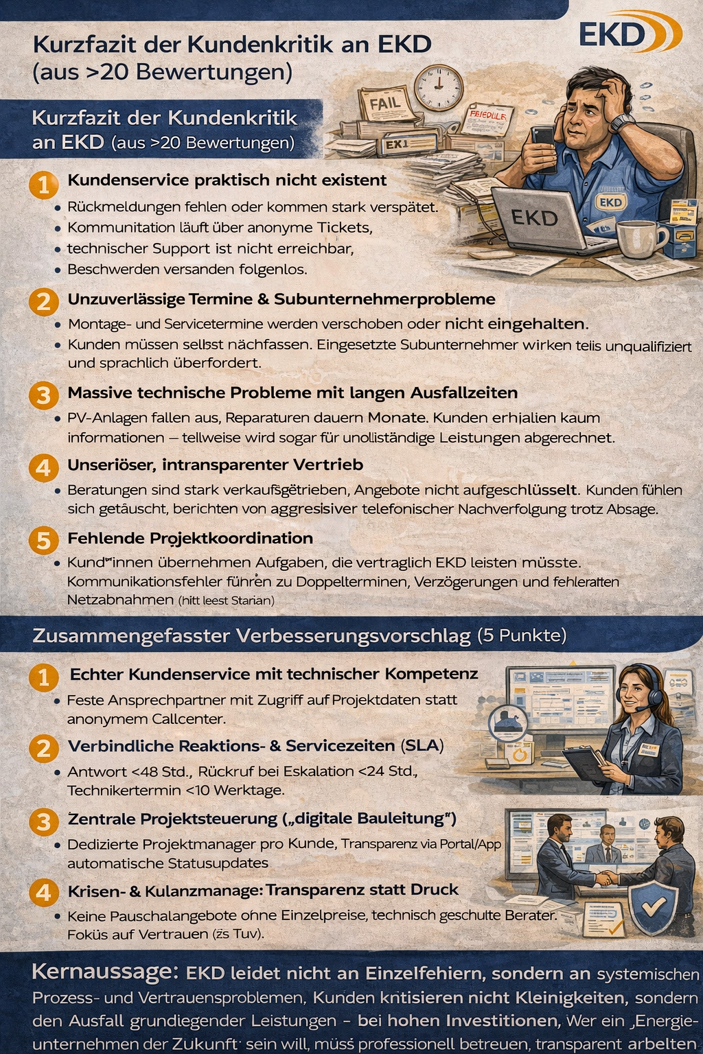 EKD hat offensichtlich mit einem systemischen Vertrauens- und Prozessproblem zu kämpfen. Kunden äußern sich nicht wegen „Kleinigkeiten“, sondern weil grundlegende Leistungen nicht funktionieren – und das trotz hoher Investitionen. Wer das „Energieunternehmen der Zukunft“ sein will, muss sich wie ein solches verhalten – nicht wie ein digitales Schwarzes Brett für unbeantwortete Tickets.