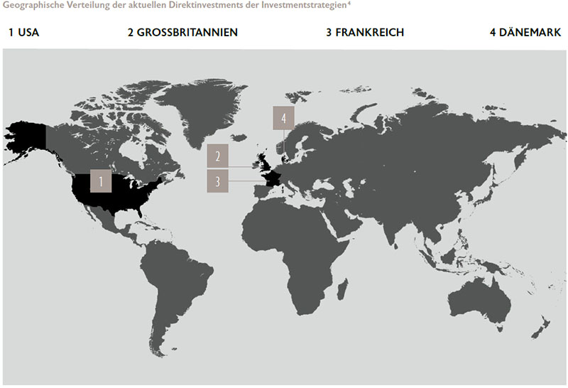 Geographische Verteilung der aktuellen Direktinvestments der Investmentstrategien 4 1 USA 2 GROSSBRITANNIEN 3 FRANKREICH 4 DÄNEMARK ![]() 4 Die Angaben basieren auf den von den Managern der institutionellen Investmentstrategien gelieferten Informationen zum 30.09.2021. ÜBERSICHT DER GEZEICHNETEN INSTITUTIONELLEN INVESTMENTSTRATEGIEN