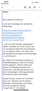 Nochmals für alle bc connect betroffenen zum Mitschreiben. Die BaFin hat die Abwicklung angeordnet, weil die BaFin festgestellt hat, dass es sich um ein illegales Geschäft gehandelt hat.
