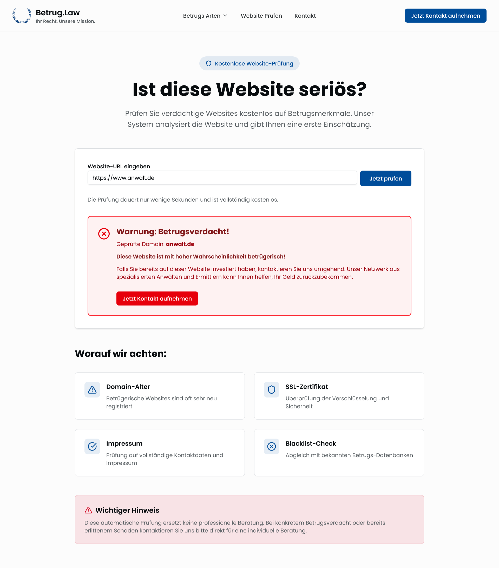 Irgendwie könnte man auf die Idee kommen, das jede Webseite als „Betrug“ erkannt wird, möglicherweise auch deshalb, das man sich bei Ihnen meldet, oder so.