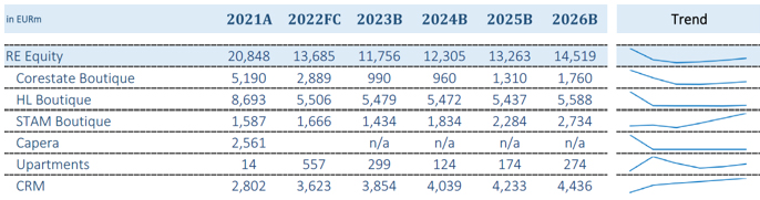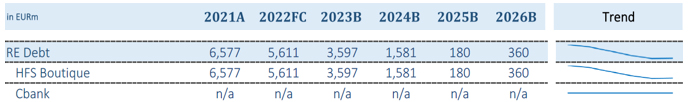 Der Stratos II-Fonds, der historisch immer stark zum Gewinn der Corestate beigetragen hatte und extrem profitabel war, fällt in Zukunft als Gewinntreiber aus. Auch wenn jüngst noch Auszahlungen von Coupon Participation Fees (CPFs) in Höhe von EUR 13 Mio. für das Geschäftsjahr 2021 erfolgt sind und ggf. weitere erfolgen werden, haben sich HFS und die Kapitalverwaltungsgesellschaft entschieden, das Beratungsmandat der HFS zum Jahresende 2022 zu beenden und es geordnet an einen Nachfolger zu übergeben. Nach Erstellung des Business Plans wurde mit der HansaInvest eine Einigung zur Aufgabe des Beratungsmandates für den Stratos II-Fonds per Ende 2022 erzielt, die eine Auszahlung der vollen Coupon Participation Fees aus dem Jahr 2020/21 vorsieht, die in Höhe von EUR 13 Mio. bereits erfolgt ist. Eine ähnliche Vereinbarung ist für den Stratos IV-Fond in Verhandlung. Insgesamt erwartet die Emittentin daraus Einnahmen von rund EUR 35 Mio. (inkl. der bereits erhaltenen EUR 13 Mio.). Corestate plant mittelfristig die Auflage eines neuen Senior-Debt-Fonds (außerhalb der HFS-Plattform). |