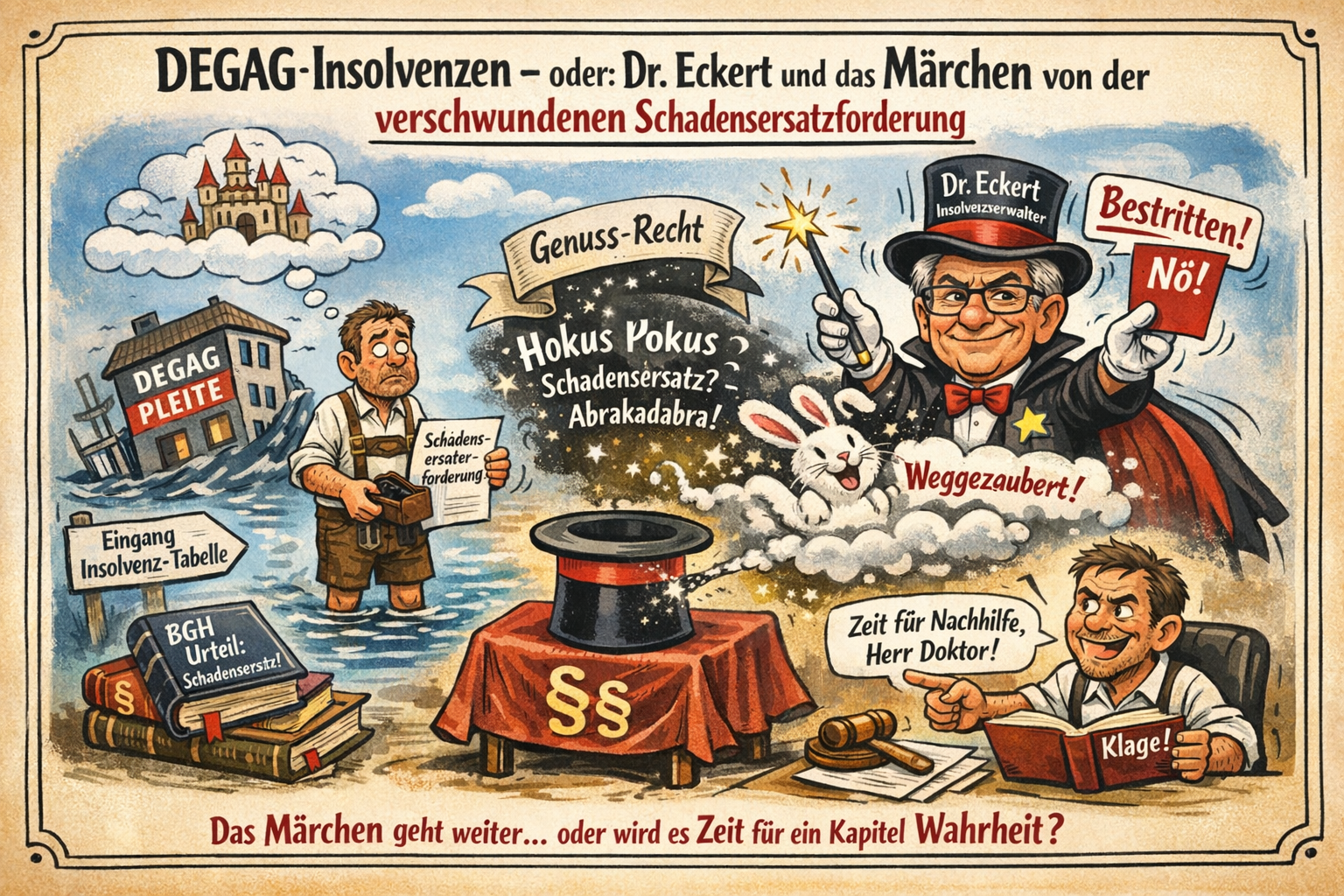 Doch damit nicht genug – Eckert, der Zauberer der Umdeutung, verwandelt Hans’ gut begründeten Schadensersatzanspruch flugs in einen „Anspruch aus Zeichnungsschein für Genussrechte“. Voilà! Magie im Insolvenzrecht. Schadensersatz? War nie da. Hat nie existiert. Hokus Pokus, weggezaubert.