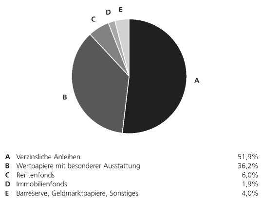 Das Fondsmanagement hat im Berichtszeitraum die Portfoliostruktur angepasst. Dabei wurde der Investitionsgrad leicht erhöht. Den Schwerpunkt bildeten unverändert Unternehmensanleihen, die eine merkliche Aufstockung erfuhren. Darüber hinaus befanden sich Staatsanleihen, Titel halbstaatlicher Emittenten und ein kleiner Restbestand an Pfandbriefen im Bestand. Im Portfolio befanden sich zudem Rentenfonds, deren Anteil jedoch merklich reduziert wurde. Ein kleinerer Anteil entfiel ferner weiterhin auf Immobilienfonds.