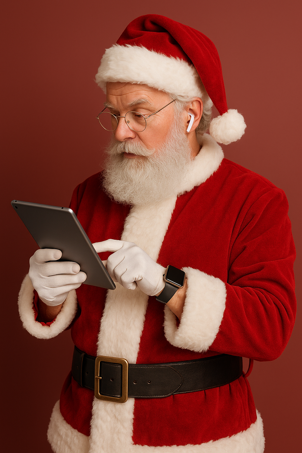 Weihnachtsmann: moderner, kommerzieller, bringt am 24. oder 25. Dezember die Geschenke, sieht aus wie ein dicker Mann im roten Mantel.