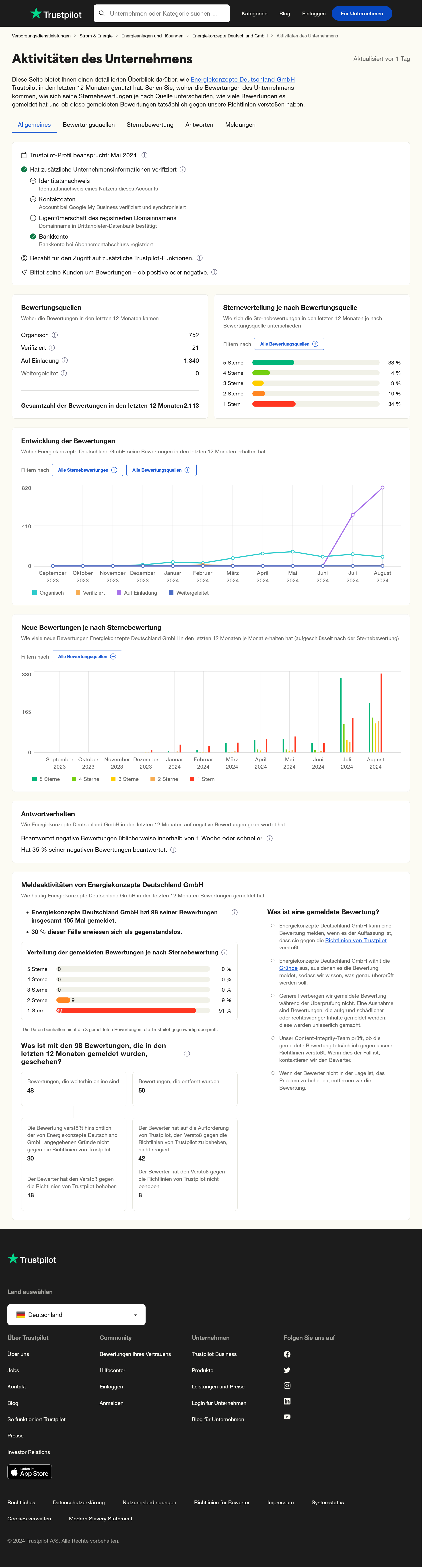 Hier unser strukturierter Bericht basierend auf den bereitgestellten Informationen über die Aktivitäten von Energiekonzepte Deutschland GmbH auf Trustpilot: