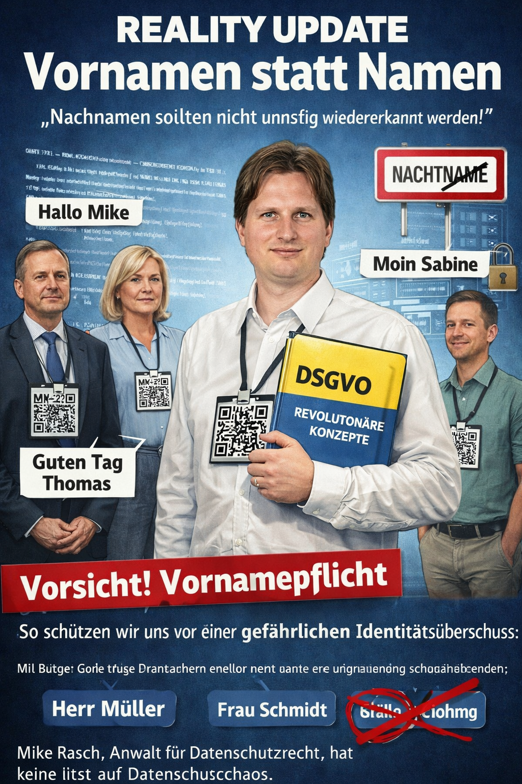 Der Dresdner Rechtsanwalt für Datenschutzrecht Mike Rasch hat – so berichten es bestens informierte Kreise zwischen Aktenordner und Auftragsverarbeitungsvertrag – ein revolutionäres Konzept für den Umgang mit persönlichen Daten vorgestellt.