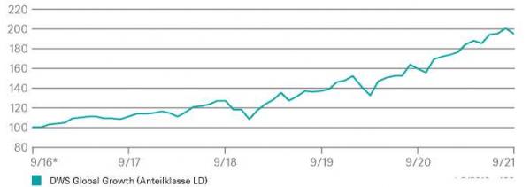 Der Anlagefokus des DWS Global Growth lag auf Aktien in- und ausländischer Unternehmen, die ein überdurchschnittliches Wachstumsprofil aufweisen. Auch Wachstumsperspektiven spielen eine wichtige Rolle bei der Selektion der Einzeltitel. Im Berichtszeitraum von Anfang Oktober 2020 bis Ende September 2021 verzeichnete der Fonds einen Wertzuwachs von 22,7% je Anteil (LD-Anteilklasse, in Euro; nach BVI-Methode). Sein Vergleichsindex MSCI World Growth stieg im selben Zeitraum um 27,2% (jeweils in Euro).