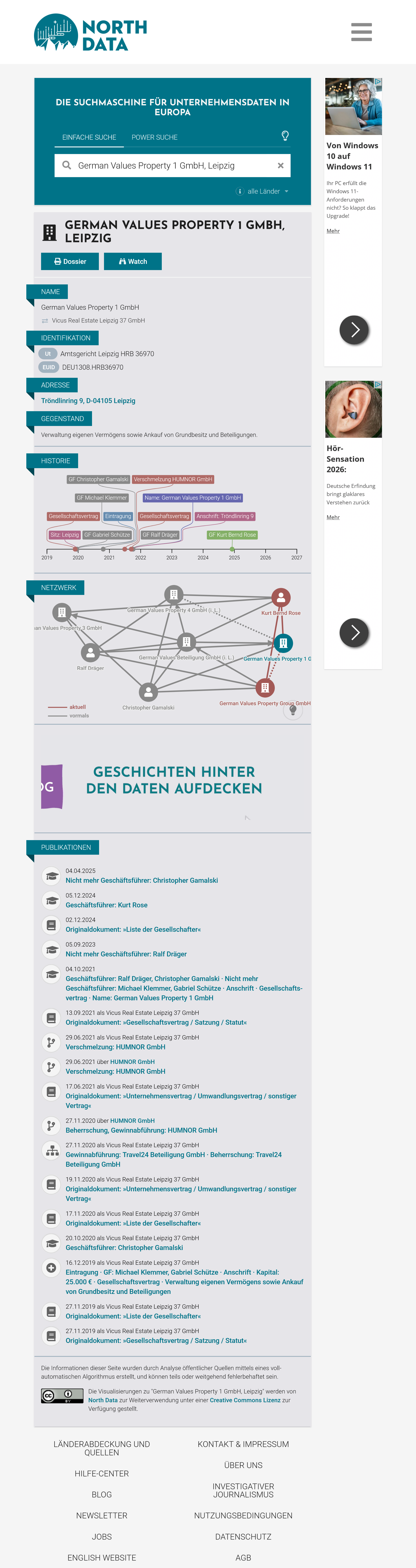 der German Values Property 1 GmbH, Tröndlinring 9, 04105 Leipzig, Amtsgericht Leipzig , HRB 36970
