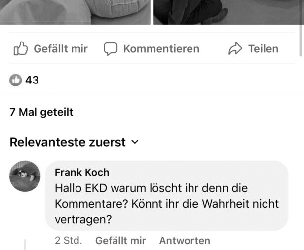 Dann hatten wir unsere Presseanfrage dorthin übermittelt, aber jetzt auch nach 10 Tagen und einer Erinnerung keine Rückantwort bekommen. Dabei hatte man dafür nach Unternehmensangaben eine extra Mailadresse eingerichtet – presse@ekd.de -. Was nutzt eine Mailadresse, wenn man als Unternehmen nicht reagiert?