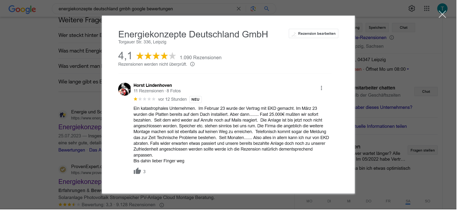 Startseite Vorsicht Verbraucherschutzinformationen EKD Solar – wieder was zum kümmern