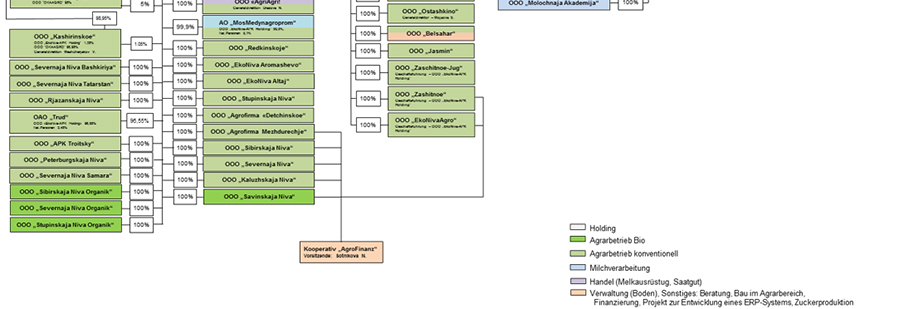 Geschäftsmodell und Konzernstruktur Die Ekosem-Gruppe ist operativ ausschließlich in dem Gebiet der Russischen Föderation tätig, wo sie auch unter der Bezeichnung EkoNiva oder EkoNiva APK auftritt. Die Ekosem-Gruppe ist seit über 20 Jahren in der Agrarproduktion in Russland tätig und deckt im Wesentlichen die folgenden Geschäftsfelder ab (alle in diesem Abschnitt 2.1. verwendeten Zahlenangaben beziehen sich auf den 31. Dezember 2021; sollten sich seither wesentliche Veränderungen ergeben haben, wird gesondert darauf hingewiesen):
