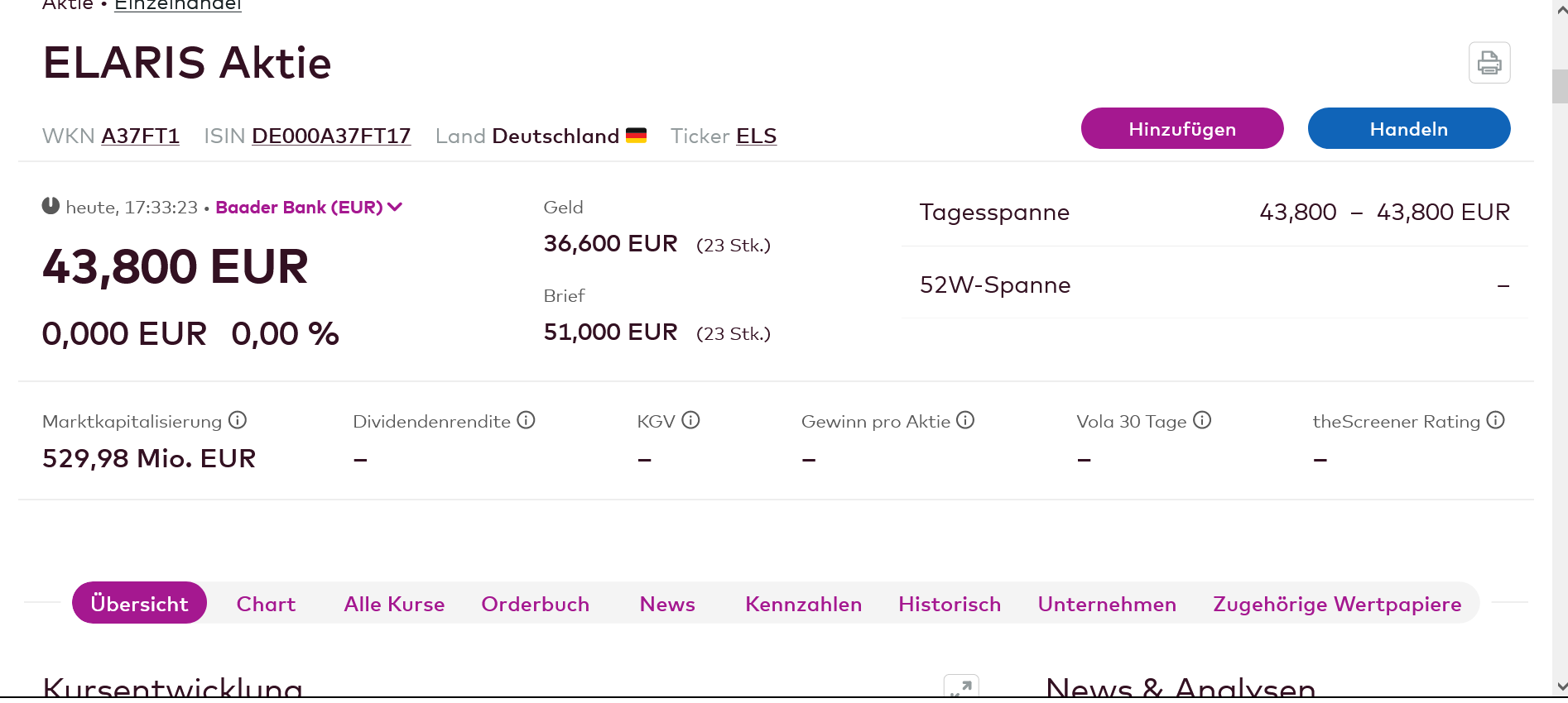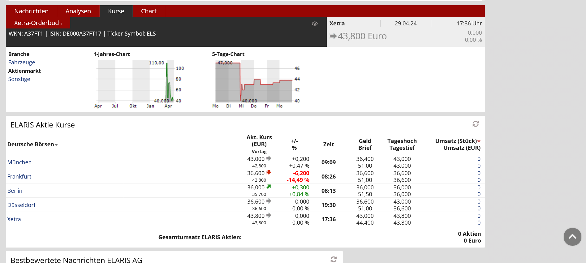 Ja, schaut man sich den unten abgebildeten Screenshot an, dann scheint dies so zu sein, dass auch heute mal wieder null Aktien gehandelt wurden. Gibt es wirklich so wenige Interessenten für diese tolle Aktie, wie uns Herr Stevenson und sein Marketingteam so gerne doch immer sagen? Offensichtlich ist das bei den Interessenten aber noch nicht so richtig angekommen, Herr Stevenson. Möglicherweise haben die Interessenten dann aber sich auch selber ein Bild von Ihrem Unternehmen gemacht und haben sich dann entschieden, nicht zu kaufen. Schauen wir mal, wie sich das entwickelt.