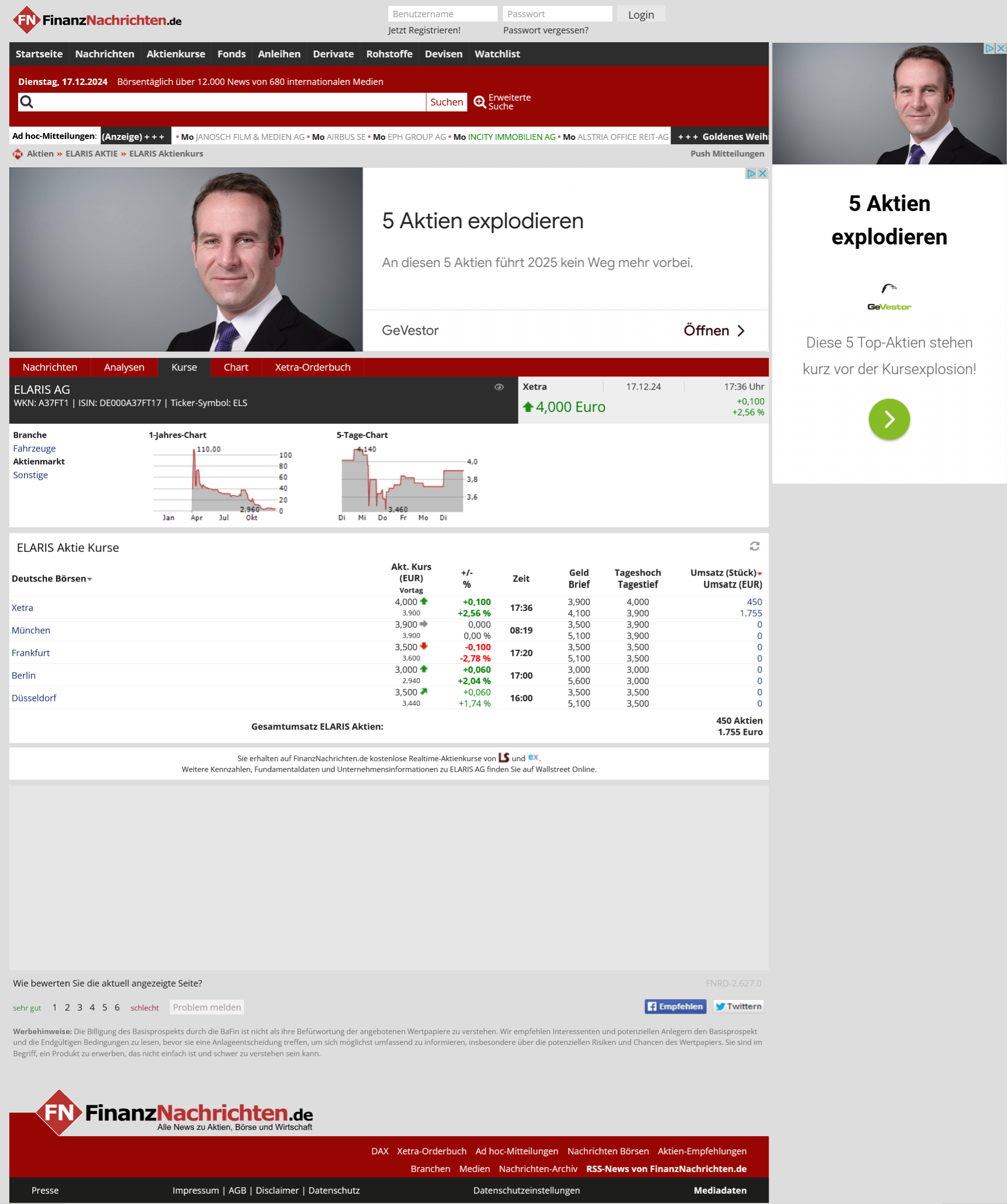 Auch die kleinen Schritte sind sicherlich beachtenswert, vor allem wenn der Kurs dann einmal in die andere Richtung zeigt, wie am heutigen Tage. Zumindest hat man die 4 Euro je Aktie wieder erreicht. Wir sind nun vor allem auf den Januar 2025 gespannt, wenn einige Haltefristen abgelaufen sind. Wie wird sich der Aktienkurs dann entwickeln?