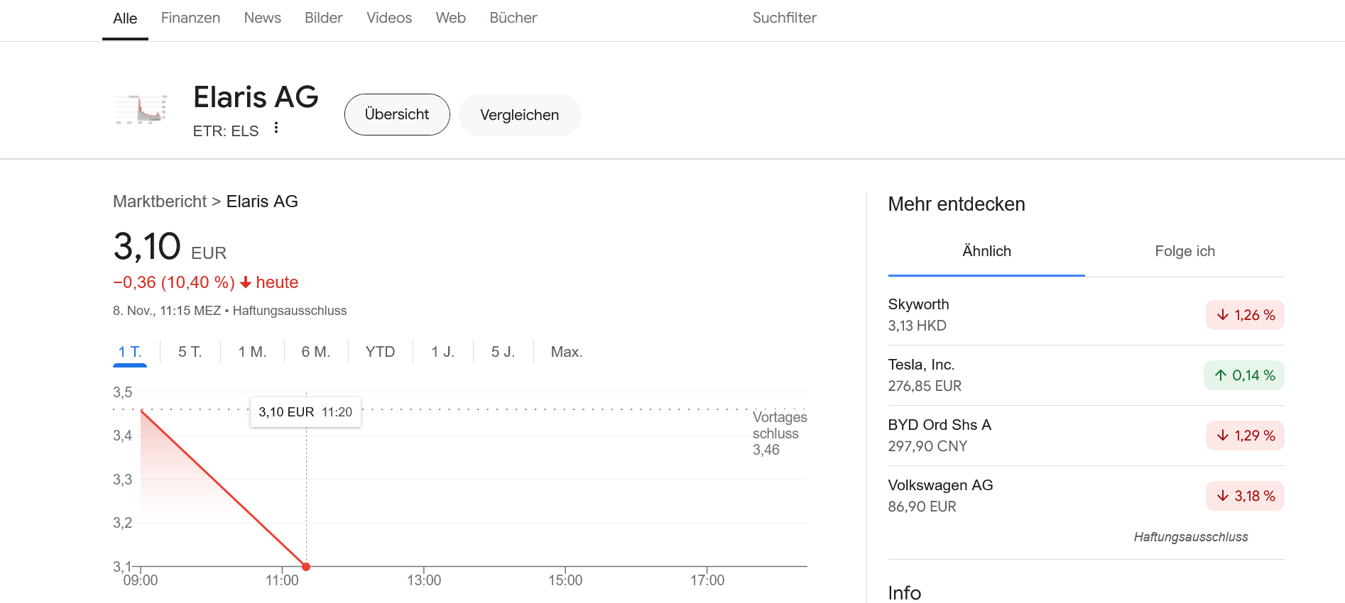 Achja der eutige Kurs ist dann ncohmals weiter nach Unten gedriftet: