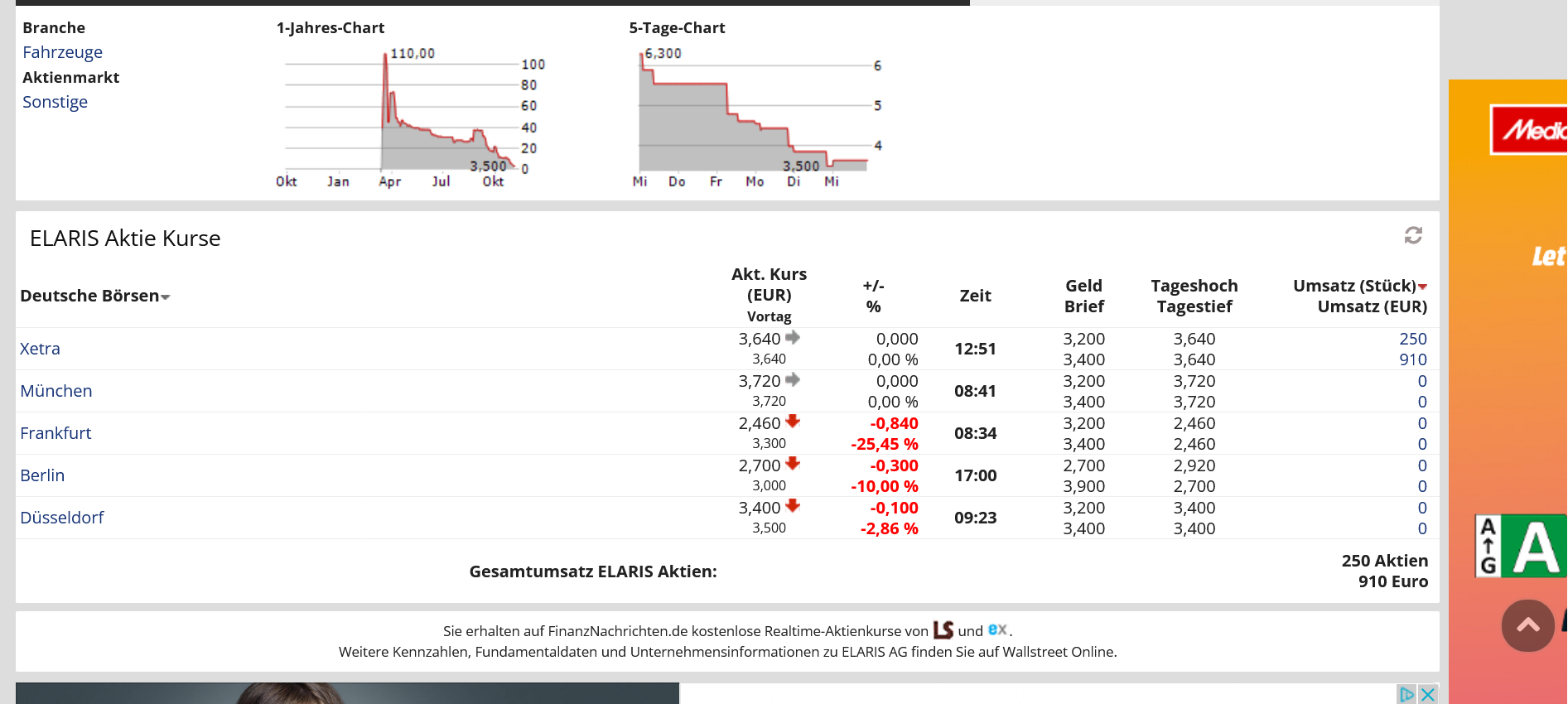 Auch heute wurden natürlich wieder Aktiengehandelt, immerhin 250 Stück. Zumindest ist das ein Erfolg für CEO Lars Stevenson.