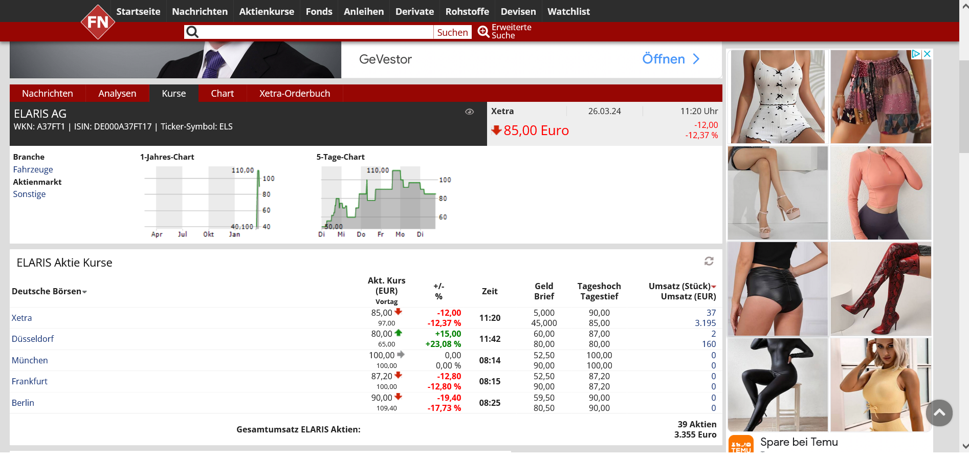 Ja, wenn man sich die aktuellen Stückzahlen anschaut, die an der Börse gehandelt werden, dann muss man das mal ganz klar so feststellen. Bei so geringen Umsätzen reagiert der Kurs sowohl nach oben als auch nach unten natürlich wesentlich empfindlicher, als wenn man eine Aktie hätte, von der hohe Stückzahlen gehandelt werden. Für Elaris AG ist das ein sehr schwieriger Markt geworden, denn die deutschen Verbraucher setzen wieder mehr auf Verbrenner. Der Bestellrückgang im E-Automobil-Bereich ist schon signifikant. Das betrifft aber nicht nur das Unternehmen Elaris AG, aber das Unternehmen hat seine Zukunft an den E-Automarkt gekoppelt. Wir sind und bleiben bei der Meinung, dass Elaris zu klein dafür ist, um im Wettbewerb der großen Anbieter mithalten zu können bzw. dann auch durchzuhalten.