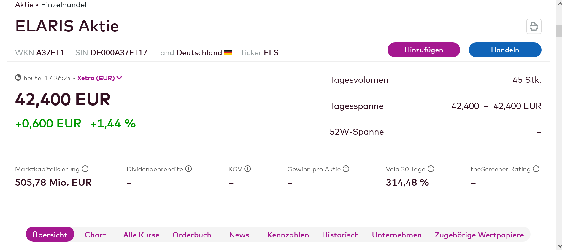 Mal ehrlich, sehr geehrter Herr Stevenson, kurbeln Sie den Aktienverkauf doch einmal so richtig an, denn Ihre gehandelten Zahlen von Aktien zeigen doch ehrlich gesagt ein erschreckendes Bild. Jeder Aktieninteressierte, der das sieht, wird doch dann einen Bogen um Ihre Aktie machen. Möglicherweise hätten Sie beim Weinhandel bleiben sollen, aber so richtig war das ja auch nicht von Erfolg gekrönt. Sie denken dann möglicherweise „Versuch macht klug“. Recht haben Sie, wenn dann irgendwann mal ein Erfolg daraus werden würde. So zwischen 500 bis 1000 Aktien am Tag würden wir als Erfolg ansehen.