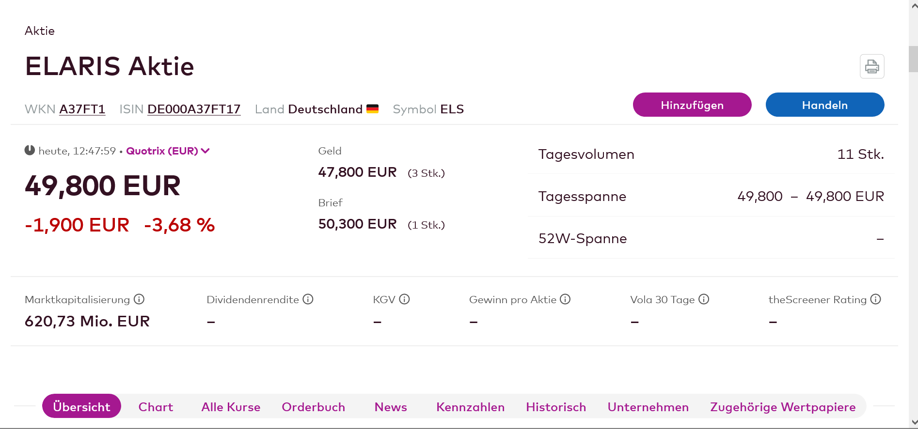 Heute ist man wieder zur bekannten „Normal verkaufs Form“ aufgelauv´fen, denn heute wurden 11 Aktien gehandelt, Hoffen wir mal nicht, das dies auf Dauer so bleibt.