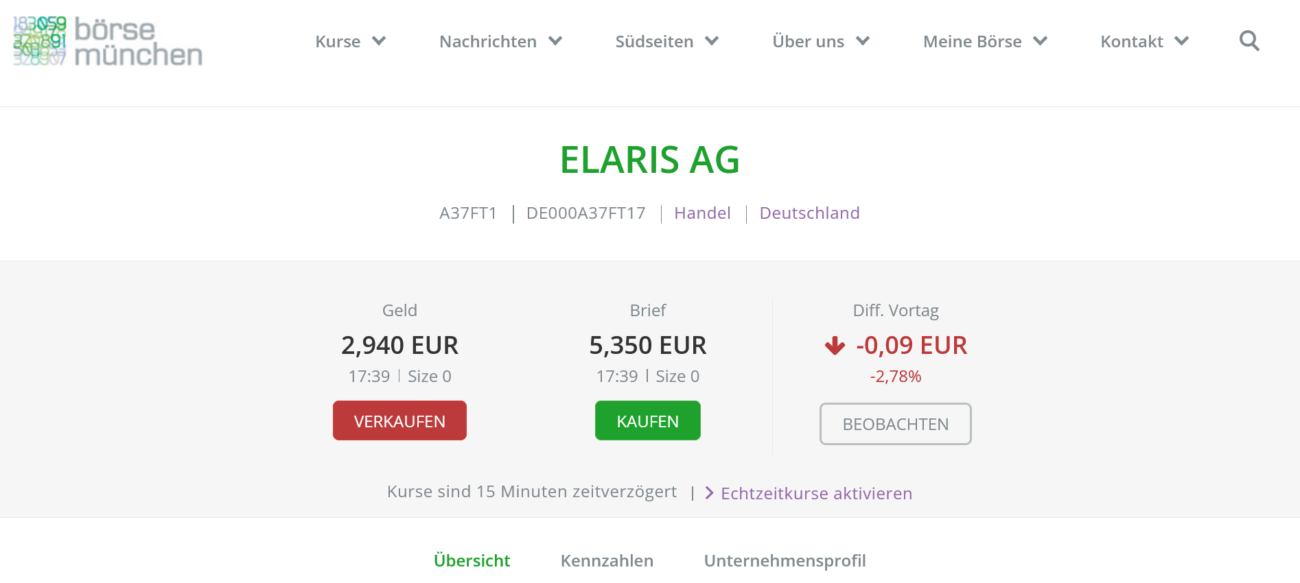 Der gestrige Handelstag ließ Aktionäre der Elaris AG kurz aufatmen: Der Aktienkurs zeigte sich von seiner freundlichen Seite und konnte deutliche Zugewinne verzeichnen. Doch die Euphorie währte nur kurz – heute fiel der Kurs wieder zurück und konnte die gestrigen Gewinne nicht bestätigen.