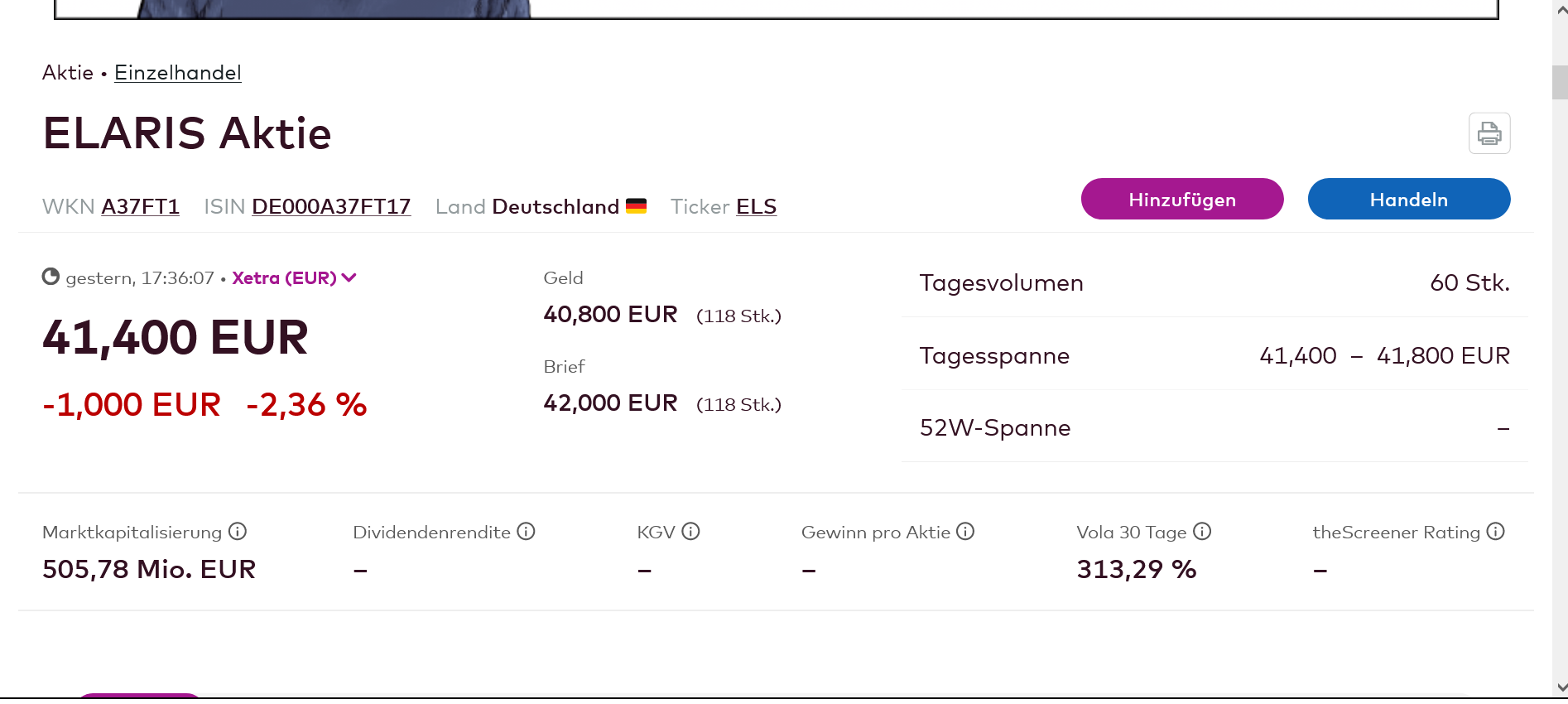 Wann geht es endlich aufwärts mit dem Handel von Aktien der ELARIS AG? Eine Frage, die nicht nur wir uns stellen, sondern auch die Aktionäre des Unternehmens. Im Moment sieht die Elaris AG nicht aus wie eine Gesellschaft mit einer großen, erfolgreichen Zukunft.