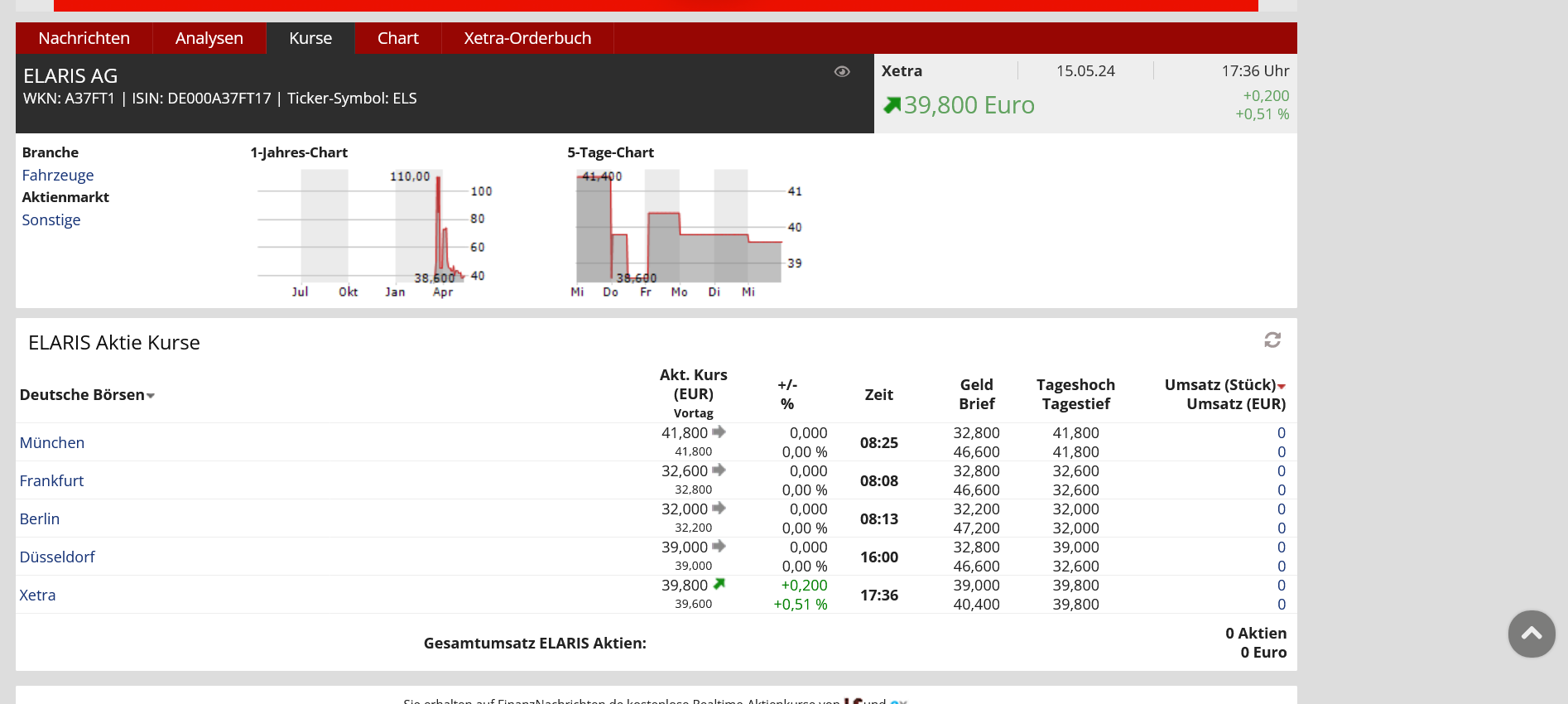 ELARIS AG und heute wieder kein Erfolg beim Verkauf der Elaris Aktie