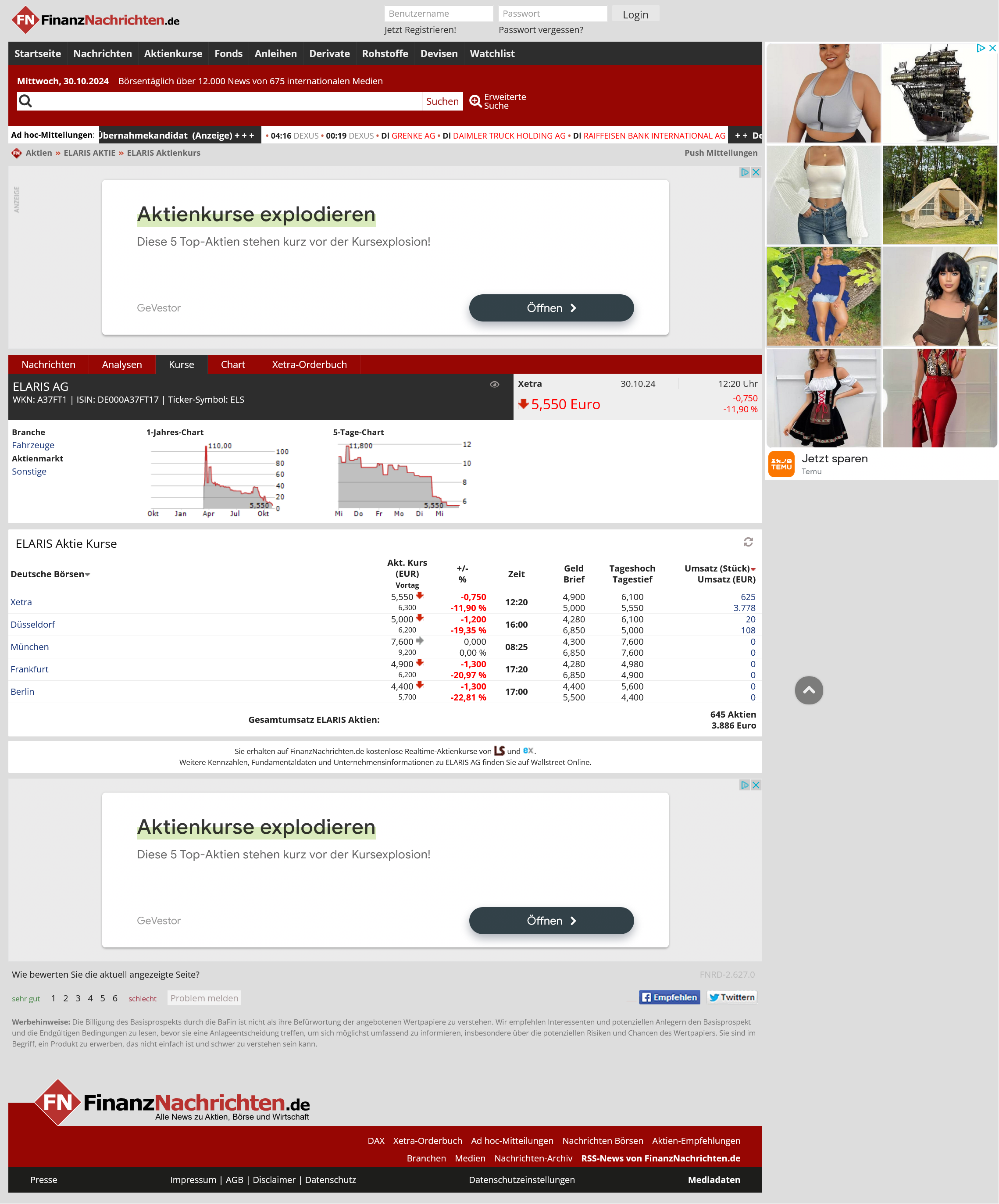 Ein bitterer Absturz für die Aktie der Elaris AG am heutigen Tag: Auch wenn der Kurswert von exakt 5,55 Euro auf den ersten Blick eine skurrile Schnapszahl darstellt, dürfte CEO Lars Stevenson alles andere als amüsiert sein. Die aktuelle Situation wirft bei zahlreichen Aktionären drängende Fragen auf – insbesondere, was die Zukunft von Elaris betrifft, sollten sich die Preise für Fahrzeuge aus China weiter erhöhen. Denn eines ist klar: Die drohenden Zölle auf Importe aus China könnten das Geschäftsmodell des Unternehmens empfindlich treffen.