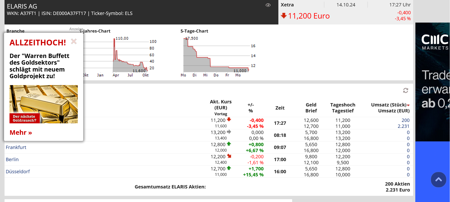 Aber leider auch wieder mit Kursverlust für die Aktie. Am Freitag hatten wir uns ja richtig erschrocken, denn da konnten wir zeitweise einen Kurs von 5,60 Euro sehen. Wir befürchten zwar, dass dies im Januar 2025 ebenfalls der Fall sein könnte, wenn möglicherweise die Aktien, die mit einer Haltefrist versehen sind, auf den Markt kommen. Es ist möglich, dass der Kurs dann stark unter Druck gerät, wie man so schön sagt. Vielleicht findet Lars Stevenson bis zu diesem Zeitpunkt aber auch eine Alternative, die die Anleger so überzeugt, dass der Kurs mittel- und langfristig auf dem Niveau bleibt, das das eigene Gutachten einst vorhergesagt hatte. Im Namen der Anleger wäre das sicherlich wünschenswert.