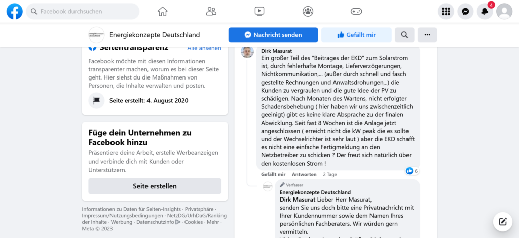 Interessant ist, diese Kommentare sind auf der Facebookseite von Energiekonzepte Deutschland GmbH zu finden.