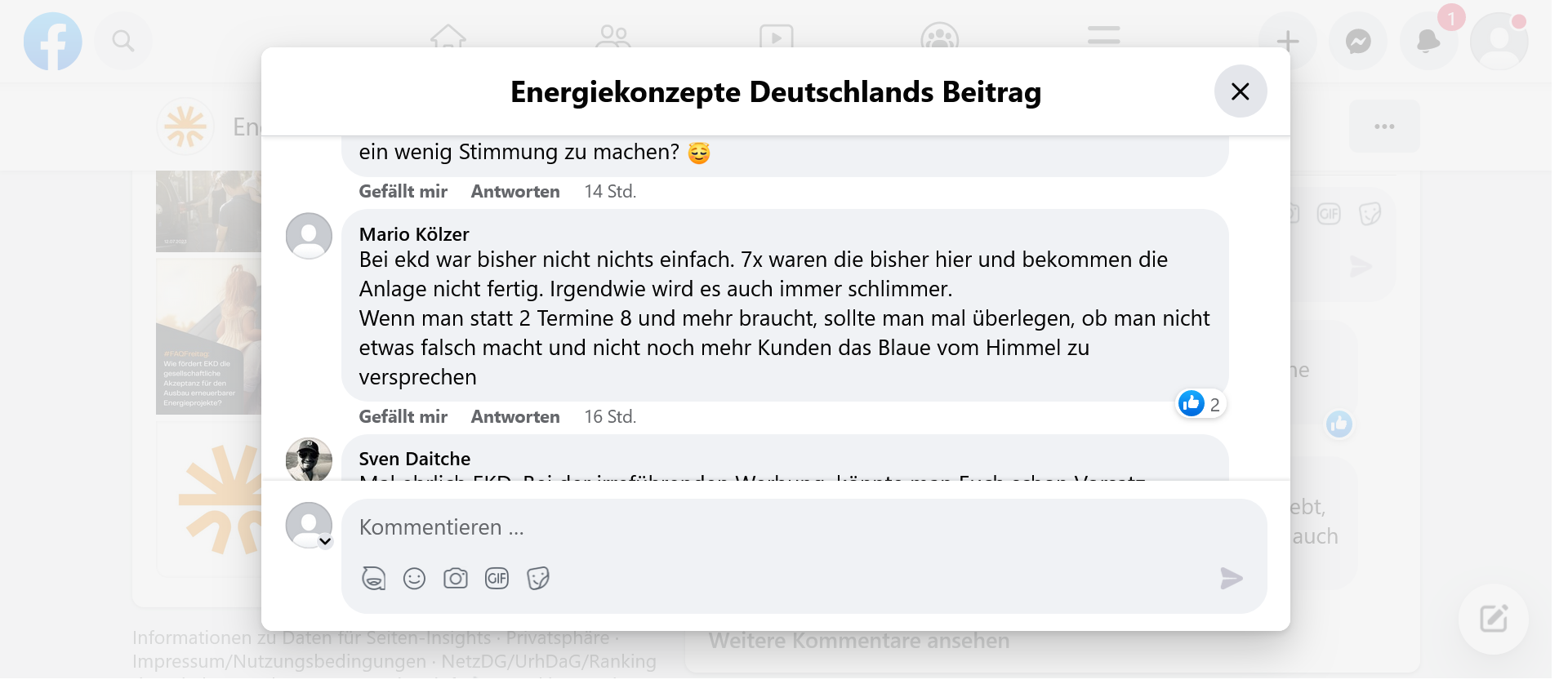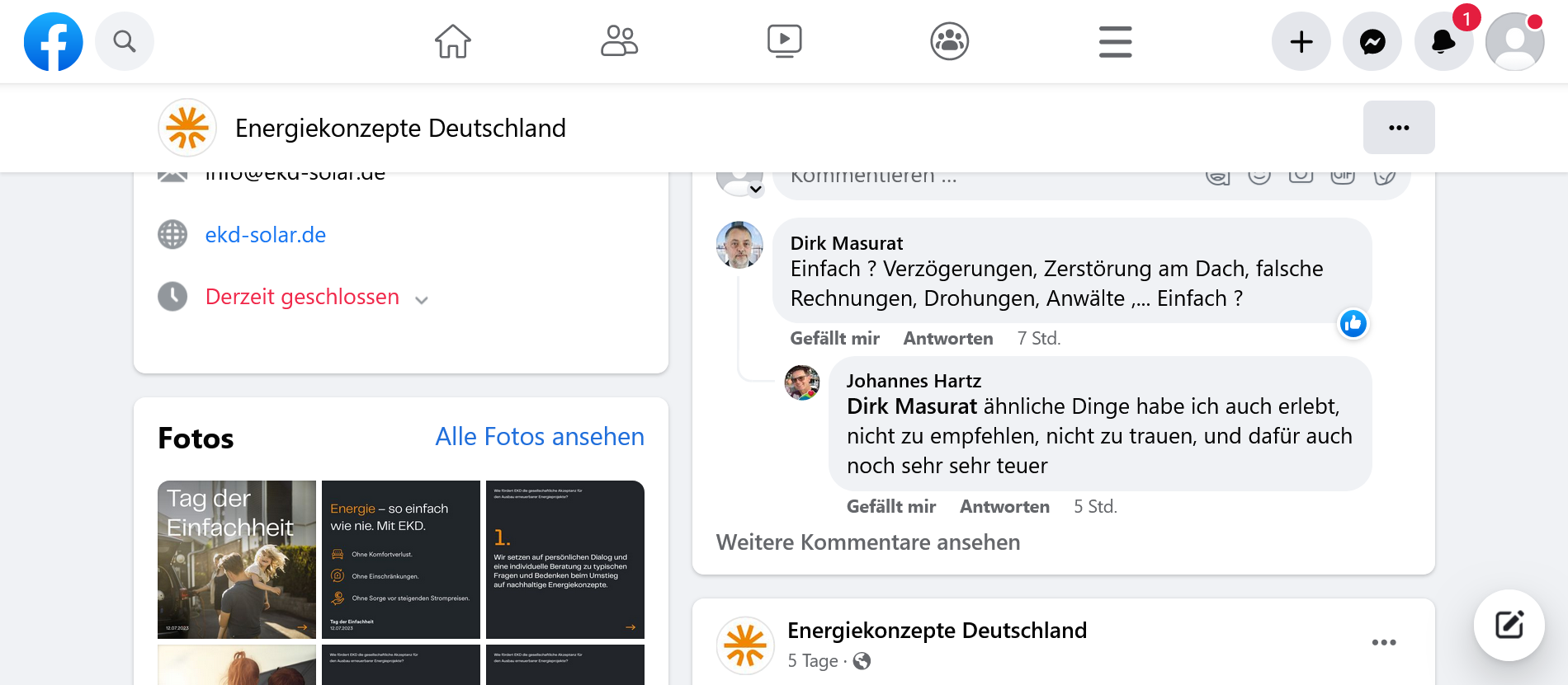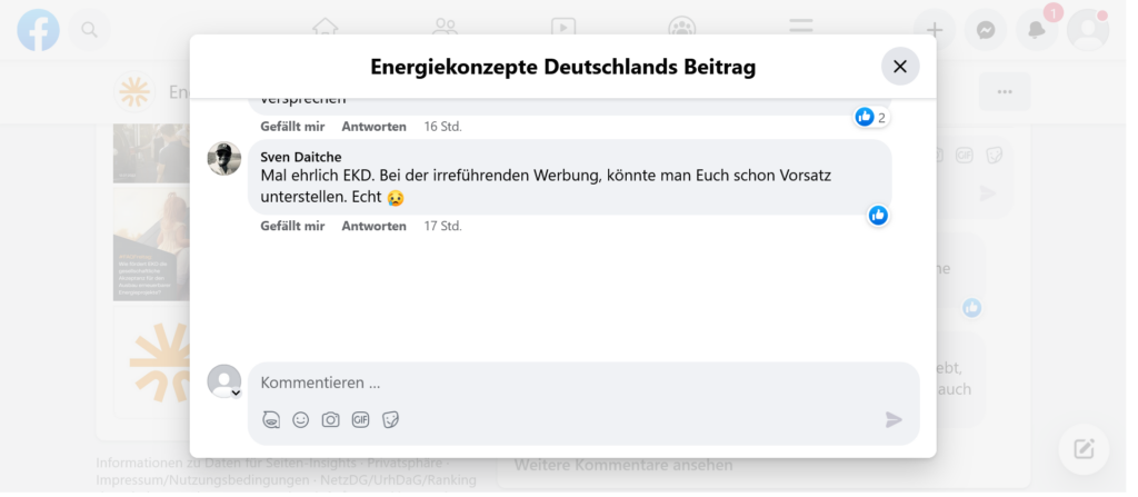 Jetzt habe ich mein Vertrauen in die EKD verloren und bezweifle, ob diese Disopsition die Auftragsabläufe überhaupt zeitnah bearbeiten kann! Bis zur Vertragsunterzeichnung war deren Außendienst noch eifrig bei der Sache und hat sich fast schon penetrant aufgedrängt, um die Zusage von mir zu bekommen.