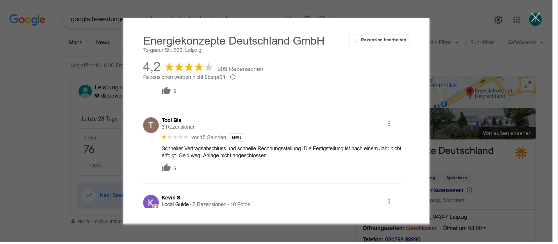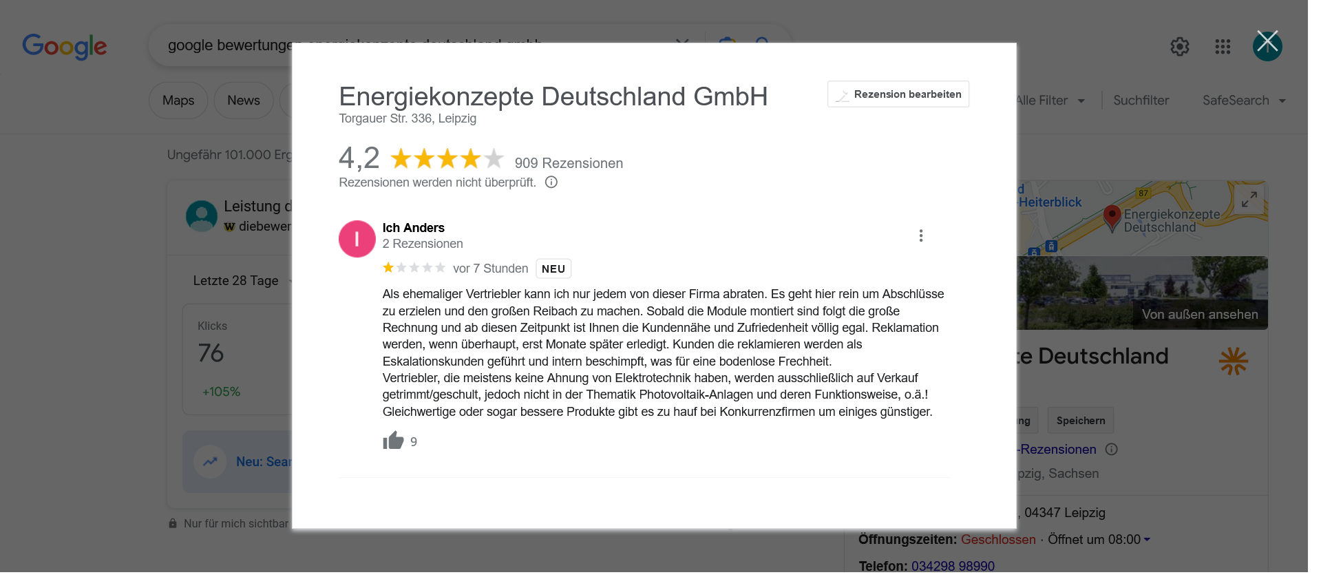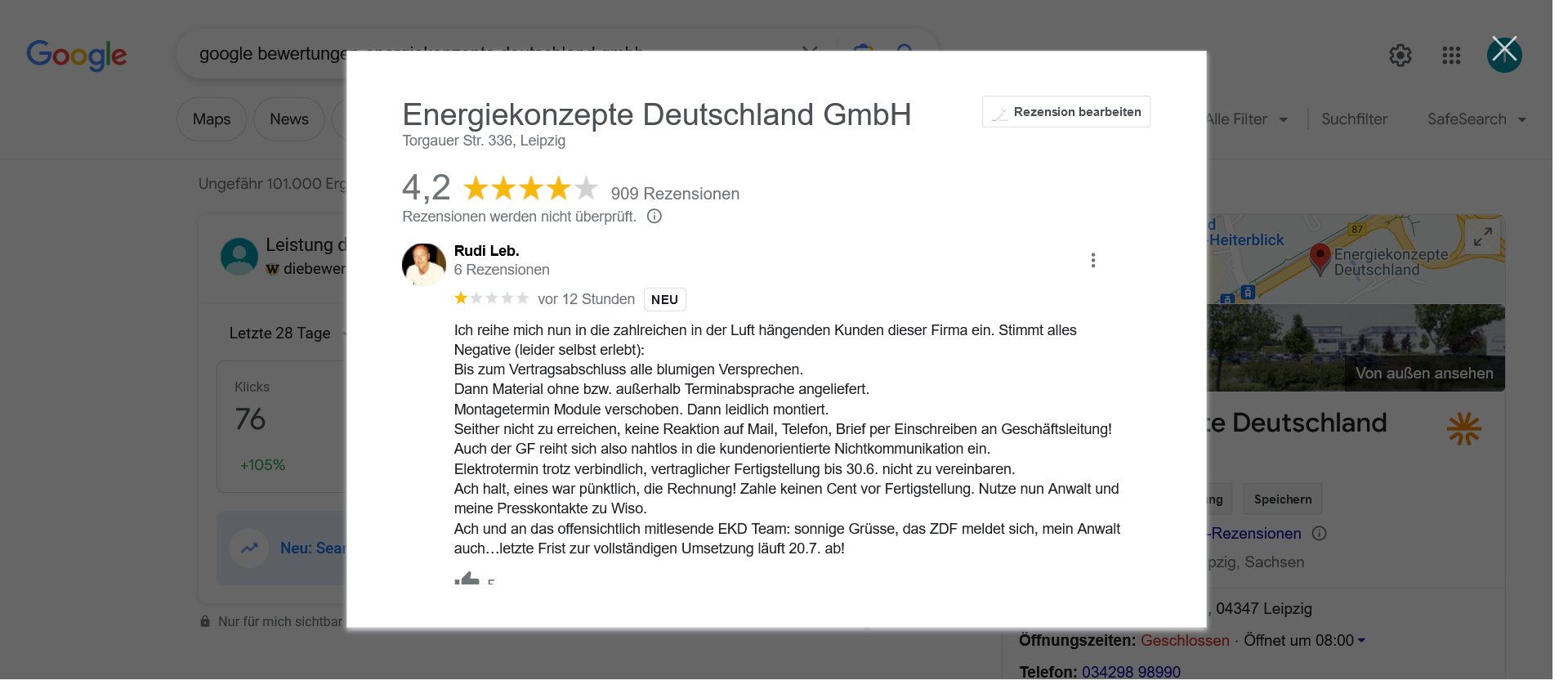 Natürlich, auch das bitte hier einmal angemerkt, gehen wir davon aus, dass es sehr viele zufriedene Kunden beim Unternehmen EKD Solar gibt, aber ein gutes Unternehmen macht dann eben auch aus, dass man sich um jeden Kunden kümmert, nicht nur um die, die zufrieden sind.