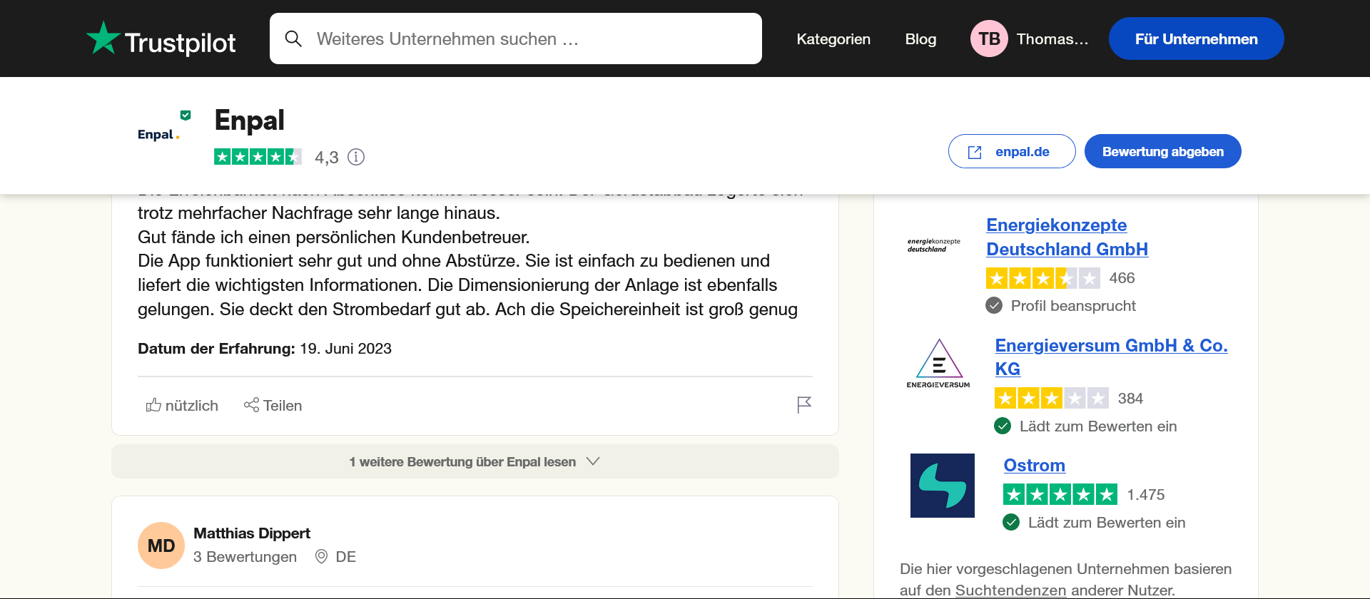 Dieses Recht wurde Trustpilot nun anscheinend von der 8. Kammer des Landgerichts Leipzig abgesprochen. Dass Trustpilot ein Eigeninteresse daran hat, Energiekonzepte Deutschland bei den Bewertungen schlecht aussehen zu lassen, darf man sicherlich ausschließen. Es bleibt abzuwarten, wie das Ganze ausgeht.