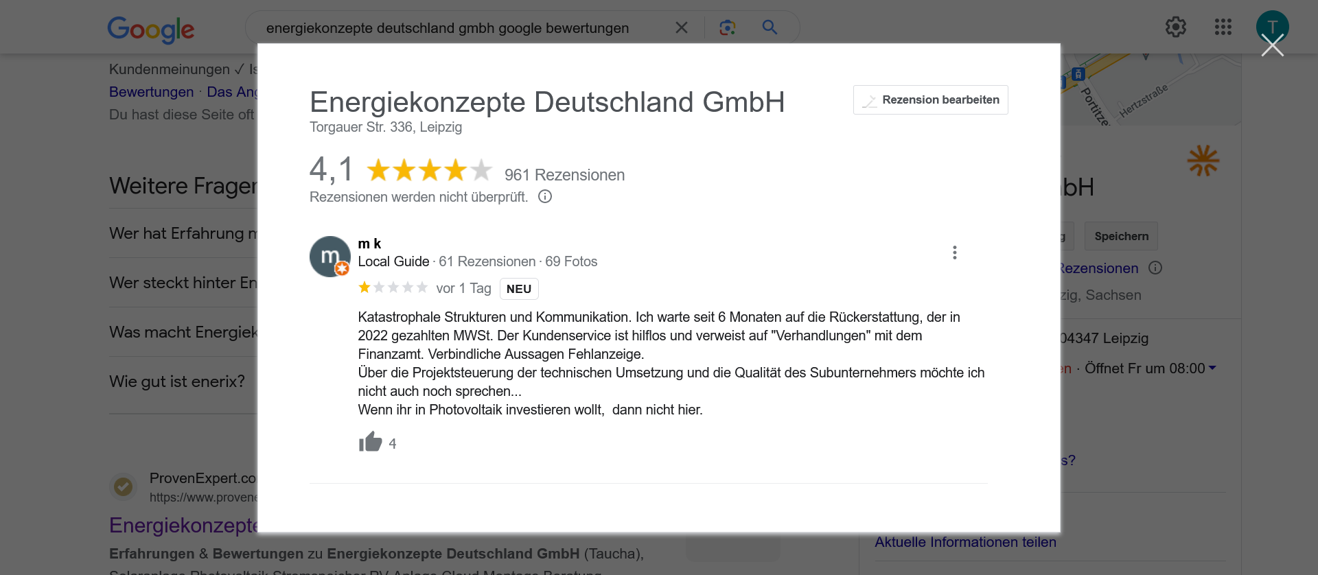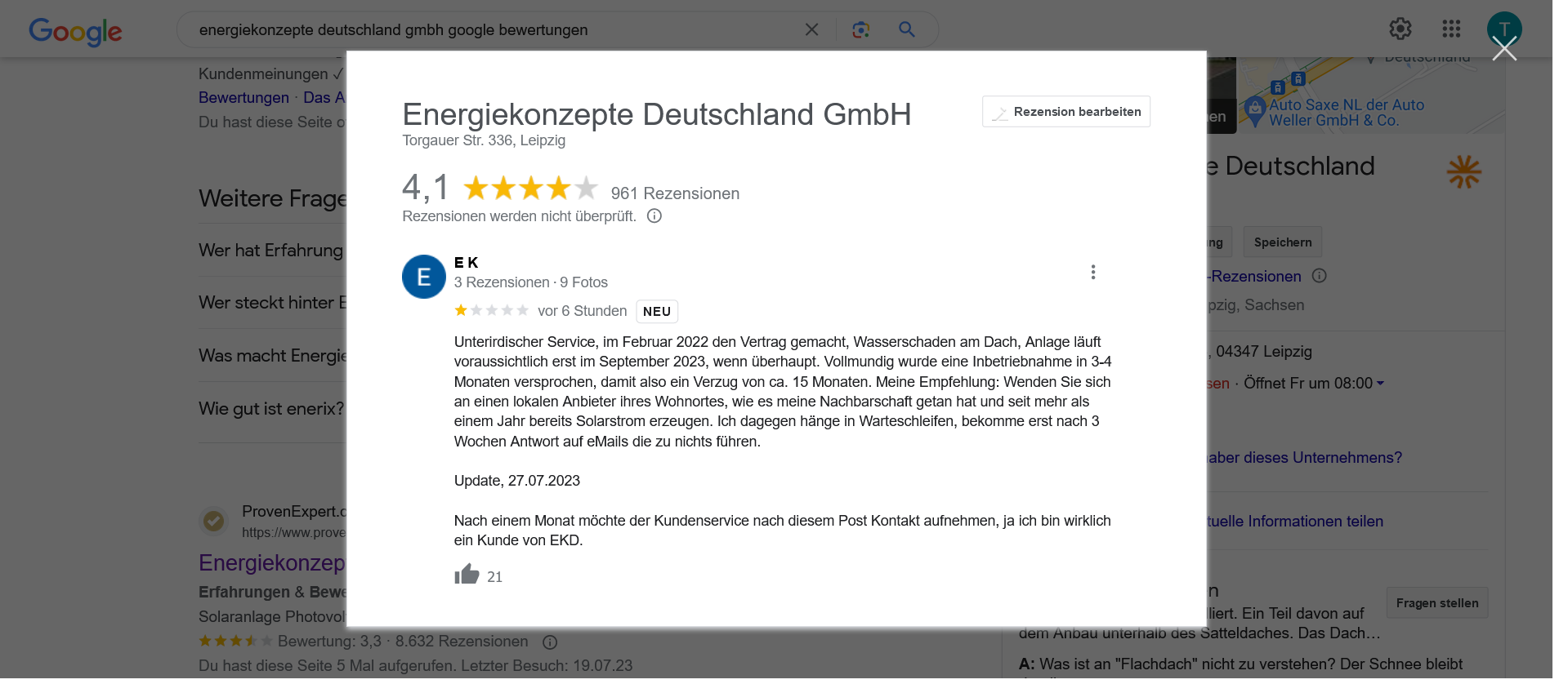 Ganz klar, es gibt auch positive Kommentare, und zumindest bei einem Kommentar hat EKD auch eine Notiz hinterlassen, um das auch einmal klarzustellen an dieser Stelle. Ganz ehrlich, gute Kommentare sollten dann bitte auch selbstverständlich sein, denn die Kunden bezahlen ja viel Geld für eine Solaranlage.