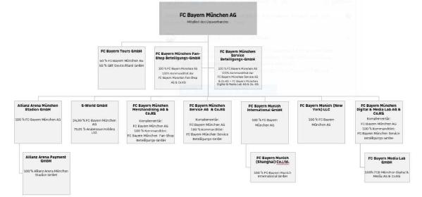 Die Konzernmutter hält an der FC Bayern Tours GmbH einen Kapitalanteil von 50%, an der S-World GmbH 24,99% und an allen anderen Tochterunternehmen 100%.