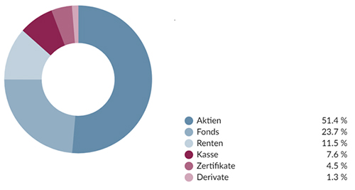 Per Berichtsstichtag 30.09.2021 verteilt sich das Fondsvermögen wie folgt auf die einzelnen Anlageklassen: