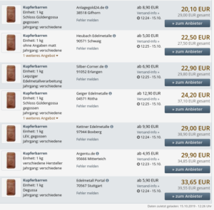 Tolles Geschäft. Vermögensanlage in Kupfer. Schon mal nachgeschaut, was man bekommt, wenn man seine Kupferbarren wieder verkaufen will?