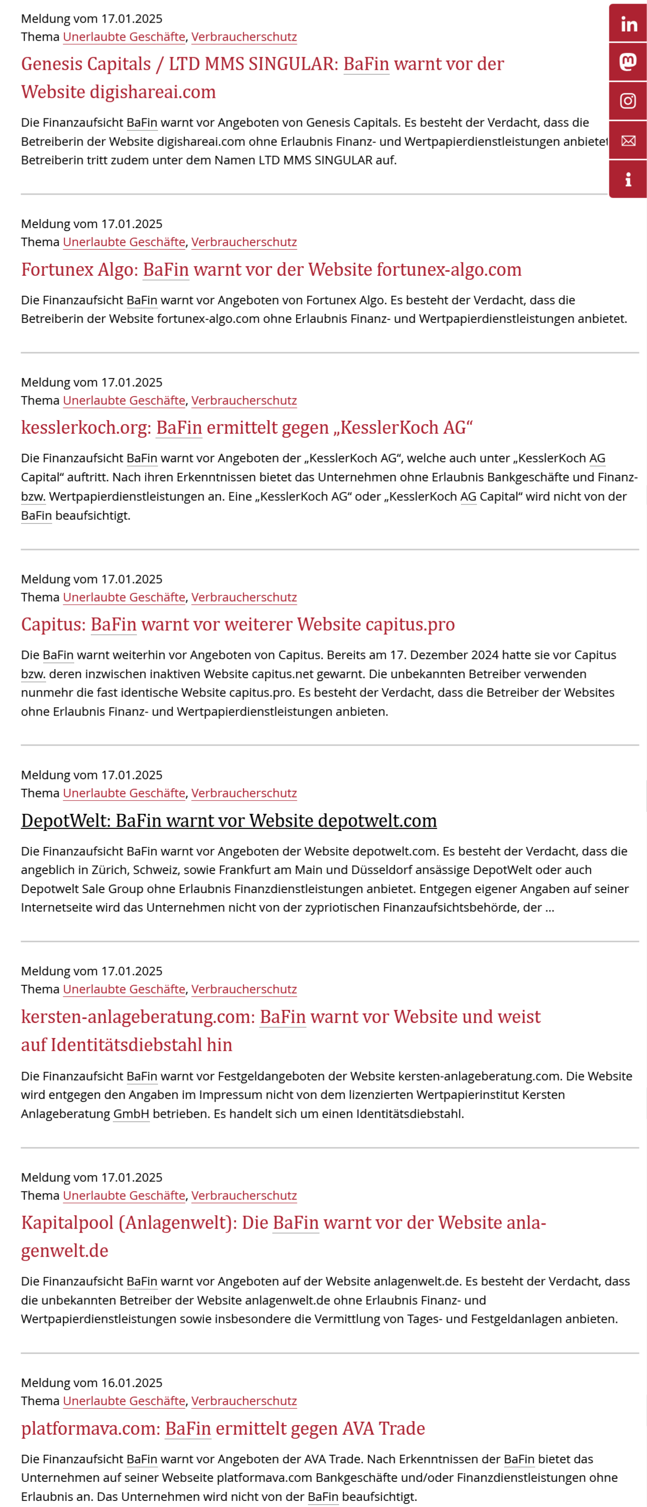 Kerstin Bontschev: Die Warnungen der BaFin sind ein ernstzunehmendes Signal. Wenn eine Plattform ohne Lizenz Finanzdienstleistungen anbietet, bedeutet das, dass sie nicht von einer Aufsichtsbehörde überprüft und reguliert wird. Verbraucher, die auf solche Angebote eingehen, setzen ihr Geld einem erheblichen Risiko aus. Im schlimmsten Fall handelt es sich um Betrug, und eine Rückerstattung der investierten Gelder ist nahezu unmöglich.