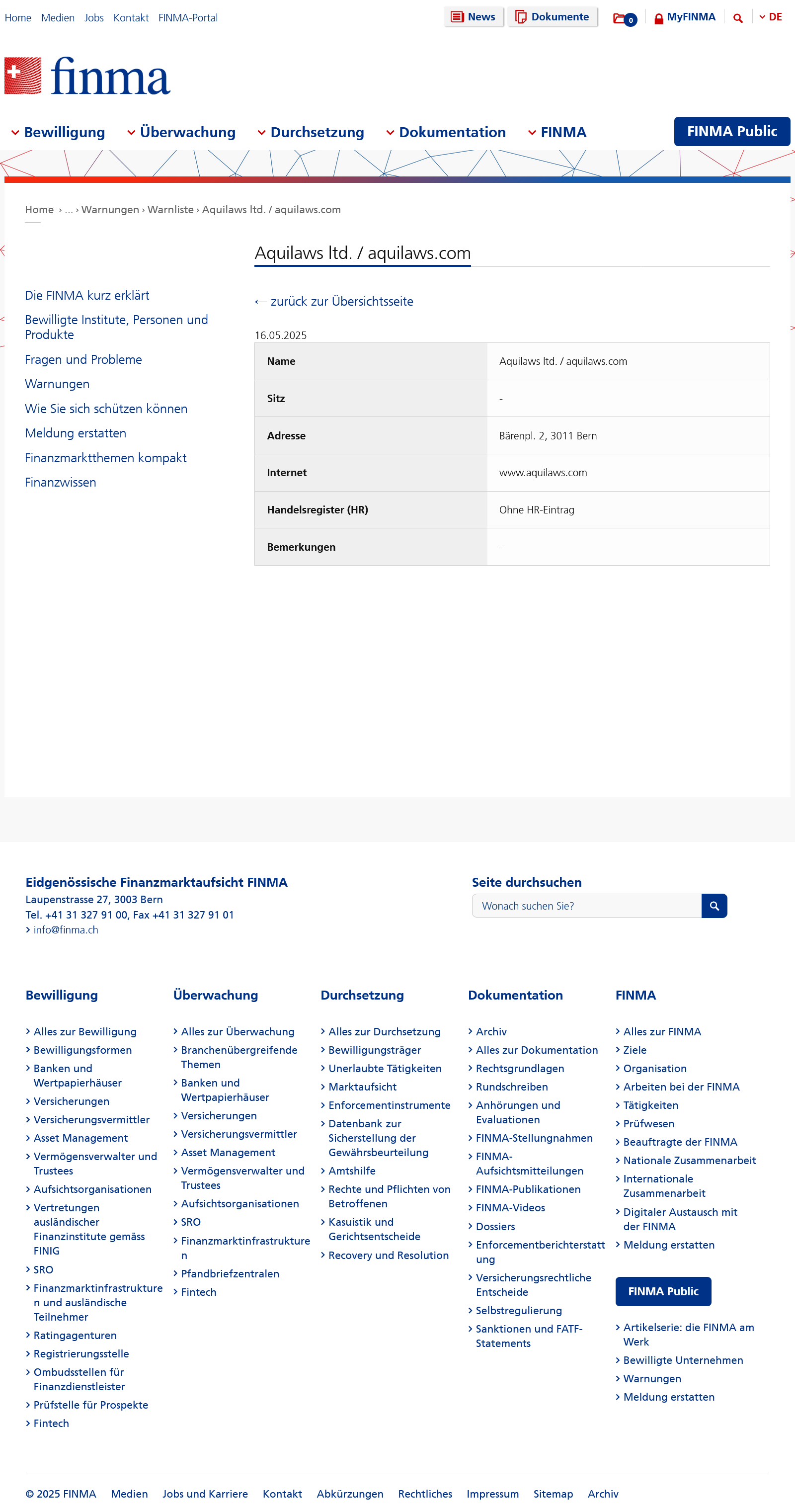 Sicherheitsüberprüfung: Prüfen Sie die Plattform in der FINMA-Datenbank und in internationalen Warnlisten.