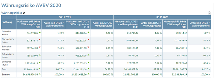 Währungsstruktur im Portfolio in % – AVBV 2020