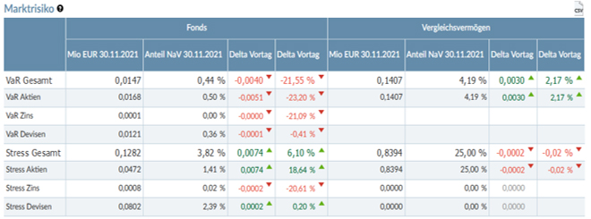 Während des Berichtszeitraums bestanden im Fonds Marktpreisrisiken ausschließlich in Form von Aktienrisiken.