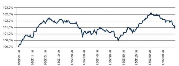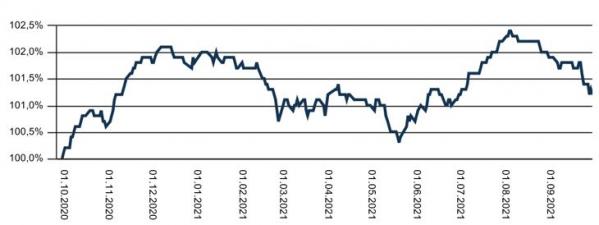 Der Beginn des Geschäftsjahres war noch stark von der ersten Phase der Corona-Pandemie geprägt. Nach einer Beruhigung über die Sommermonate drohte eine starke zweite Infektionswelle, die konjunkturelle Erholung wieder abzuwürgen. Die Nachrichten über die hohe Wirksamkeit neuartiger Impfstoffe veränderte dann die Stimmungslage dramatisch. Trotz steigender Corona-Inzidenzwerten engten sich die Creditspreads Mitte/Ende des 4. Quartals 2020 stark ein. Hier war der Fonds mit einer Kassehaltung von 10-15 % zu vorsichtig positioniert, weil die konjunkturelle Entwicklung im Zuge der Corona-Einschränkungen und Lockdowns zunächst noch kritsch gesehen wurde.