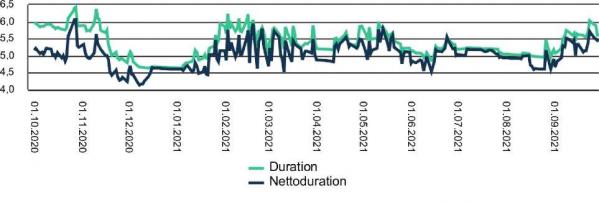Die Duration sowie Nettoduration (i.e. Duration inklusive Futures- und Kassenposition) des Sondervermögens im Berichtszeitraum zeigt folgende Grafik: