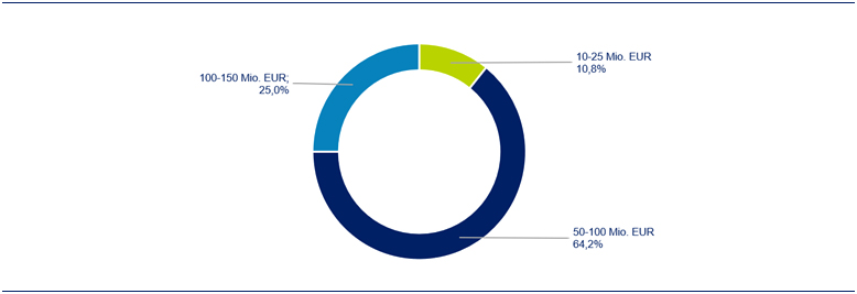 1) Im Verhältnis zu den Vermögenswerten aller Fondsimmobilien. Die Vermögenswerte setzen sich aus den anzusetzenden Kaufpreisen(i.d.R. 3 Monate ab Erwerbsdatum) bzw. Verkehrswerten (i.d.R. ab dem 4. Monat nach Erwerbsdatum) der einzelnen Objektezusammen. Die Verbindlichkeiten aus Krediten resultieren aus der anteiligen Fremdfinanzierung der Immobilien (97,7 Mio. EUR). Im Rahmen von Kreditaufnahmen für Rechnung des Sondervermögens sind zum Sondervermögen gehörende Vermögensgegenstände in Höhe von 97,7 Mio. EUR mit Rechten Dritter belastet. Kreditaufnahmen der zum Sondervermögen gehörenden Immobilien-Gesellschaften belaufen sich auf 5,8 Mio. EUR, daraus sind den Immobilien-Gesellschaften gehörende Vermögensgegenstände in Höhe von 5,8 Mio. EUR mit Rechten Dritter belastet. Kreditvolumina in EUR nach Restlaufzeit der Zinsfestschreibung