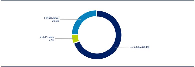 Stand 30.09.2021 Damit erfüllen 75,03% der Immobilien alle in der ESG Strategie des REALISINVEST EUROPA festgelegten Kriterien. 100% der Immobilien verfügten zum Stichtag über eines der gängigen Nachhaltigkeitszertifikate. Kreditportfolio und Restlaufzeitenstruktur der DarlehenÜbersicht Kredite